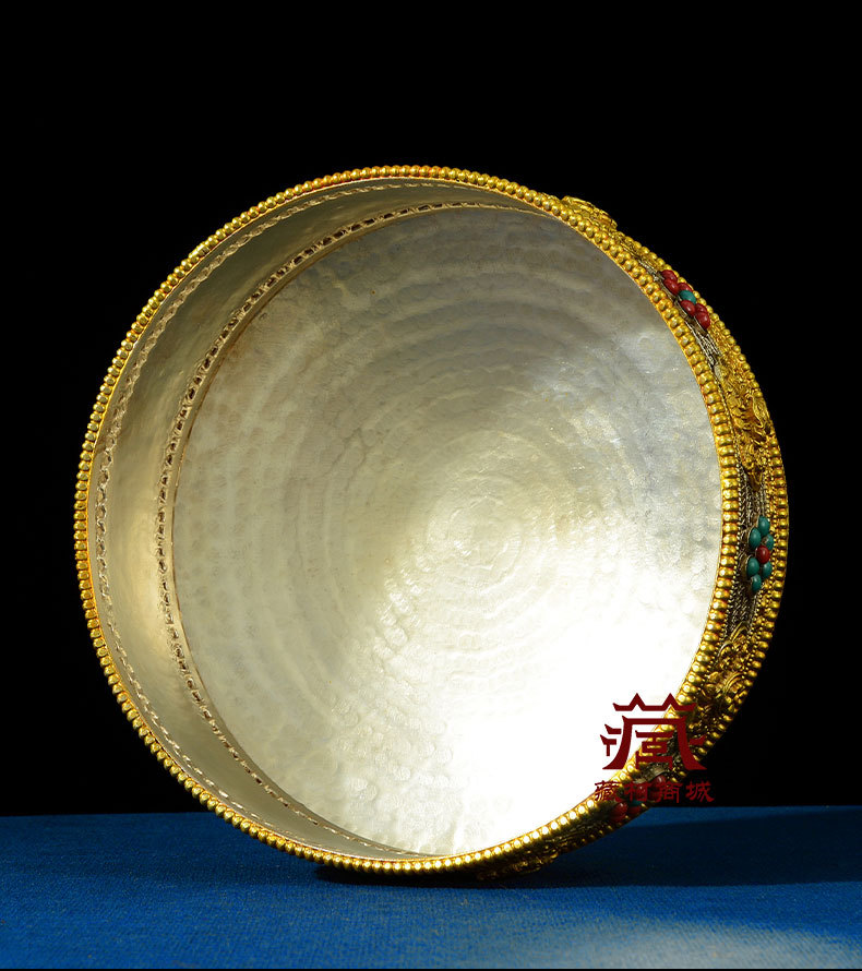 給水碗の水と財神のシャシーの銅の給水碗の聖水の皿は仏の家庭用のチベット式の赤い銅の浄水の皿に供えます。