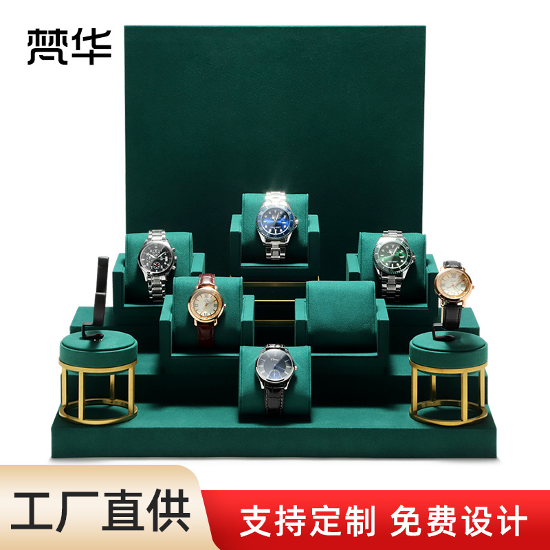 工場直供腕時計展示道具生放送ショーウインドー腕時計陳列道具金属墨緑階段形展示棚