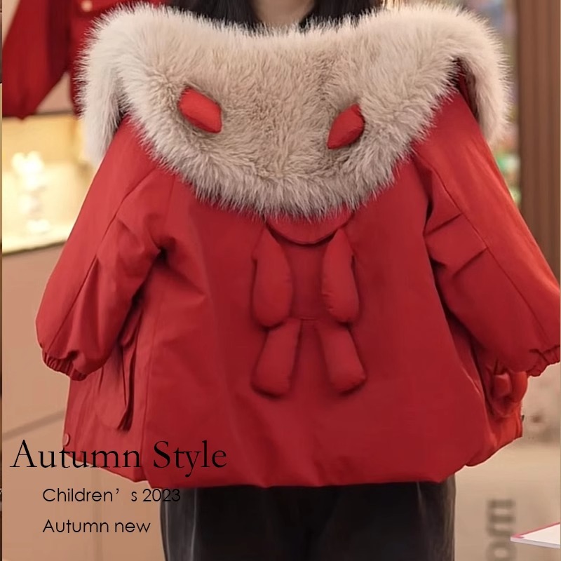 中长款加绒中长款棉衣韩版休闲防寒派克服棉袄拜年红色潮喜庆女童