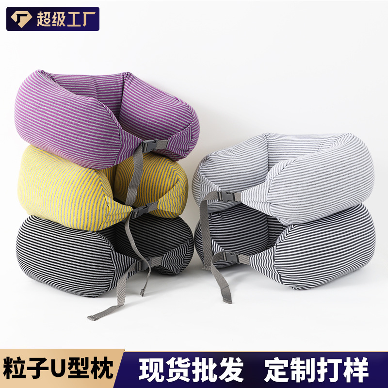 日本式純綿発泡粒子枕軽量多機能旅行飛行機首保護枕ニット綿顆粒u型枕