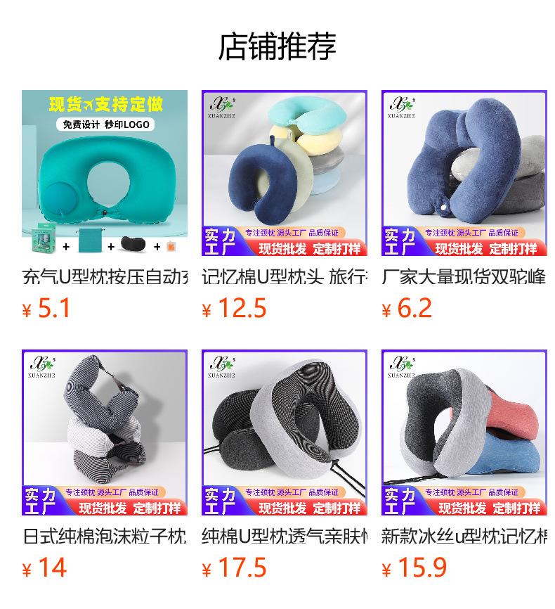 メーカー大量現物キャメルケースu型枕カスタムロゴクリエイティブpp綿記憶綿u型枕多機能ネック