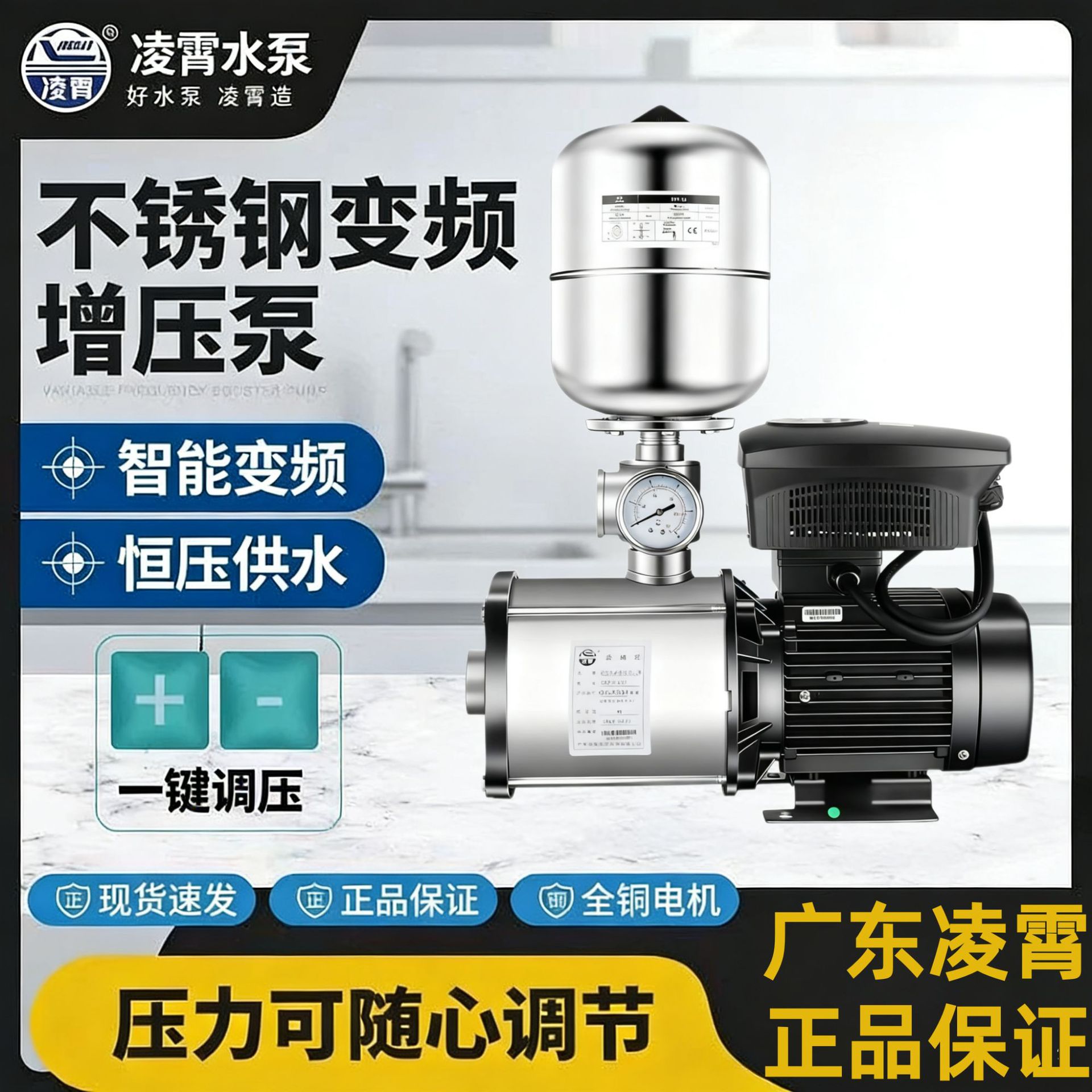 凌霄水ポンプインバータ加圧ポンプ304ステンレスCMI全自動高揚程商用定電圧水道水ポンプ