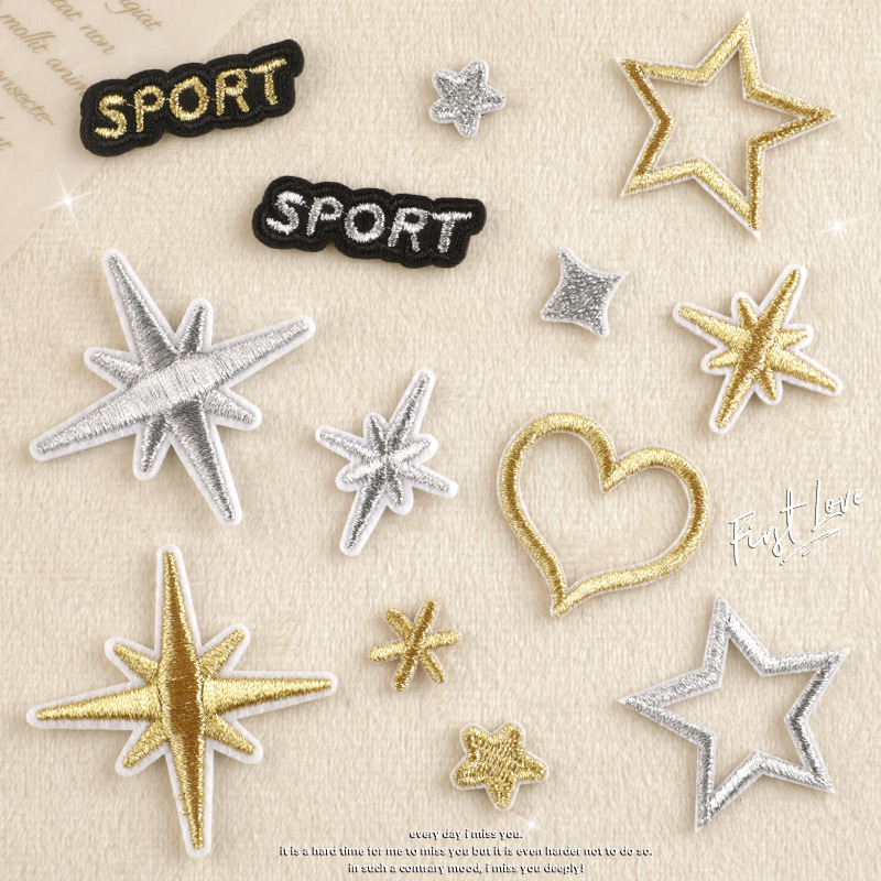 パッチ刺繍刺繍パッチ細いフラッシュ五角星愛服アクセサリーdiyアクセサリー韓国熱売布貼り
