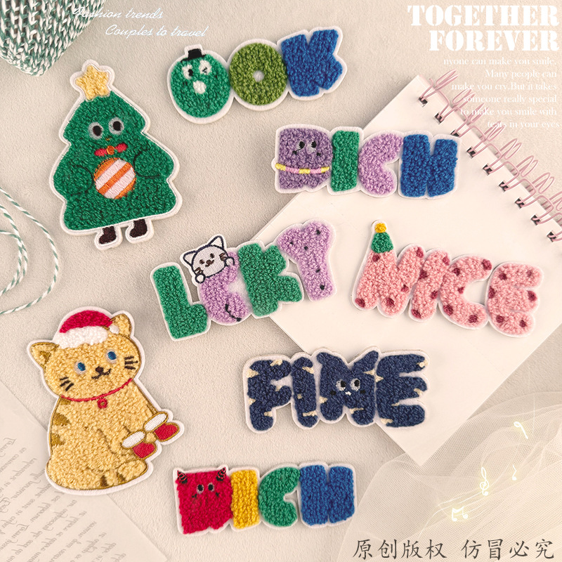 オリジナルの刺繍マークの服のアクセサリーはタオルを飾ってクリスマスの英語の猫の刺繍を刺繍します。