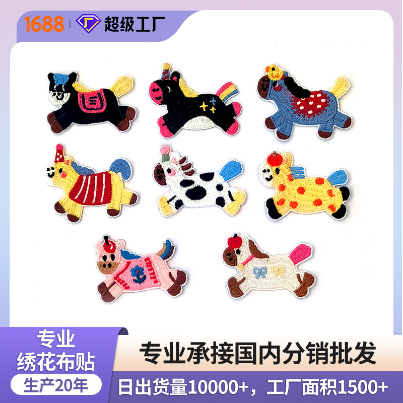 刺绣布贴马年祝福自粘可爱小马手账diy手机壳红包配饰衣服补丁贴
