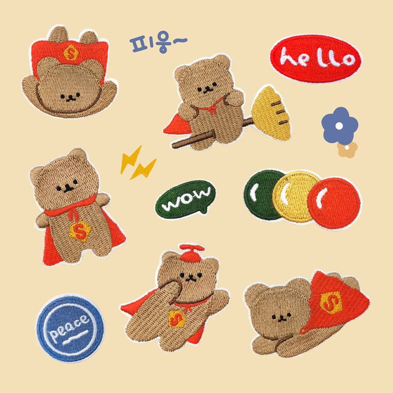 韓国風アイロン接着式赤いマントスーパーマンベア刺繍ステッカーかわいい文字漫画布ラベルバッグ装飾用粘着シール