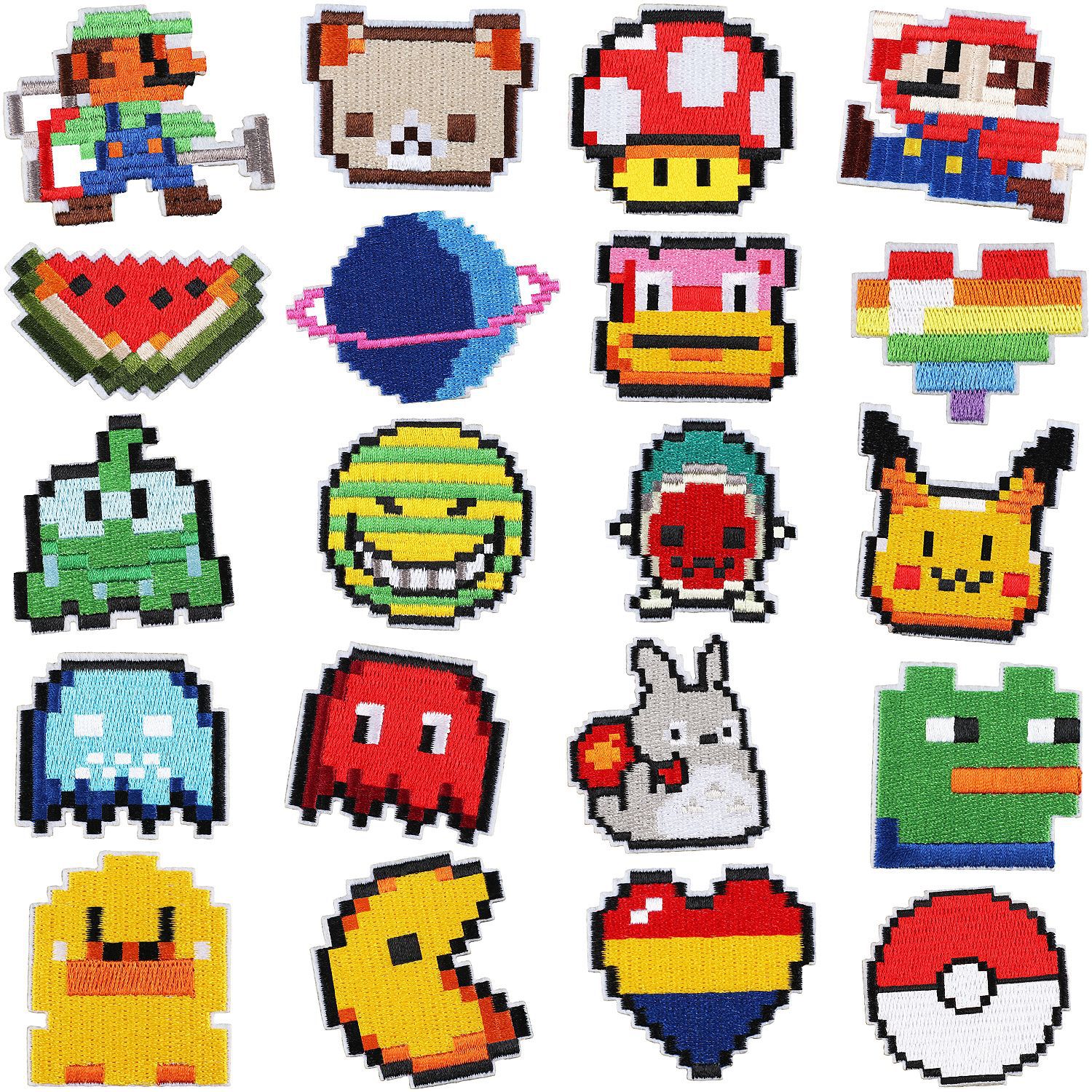 新型の画素風の漫画の刺繍はモザイクの布を貼って復古のパッチを貼ってゲームの人物のコンピュータの刺繍の章を貼ります。