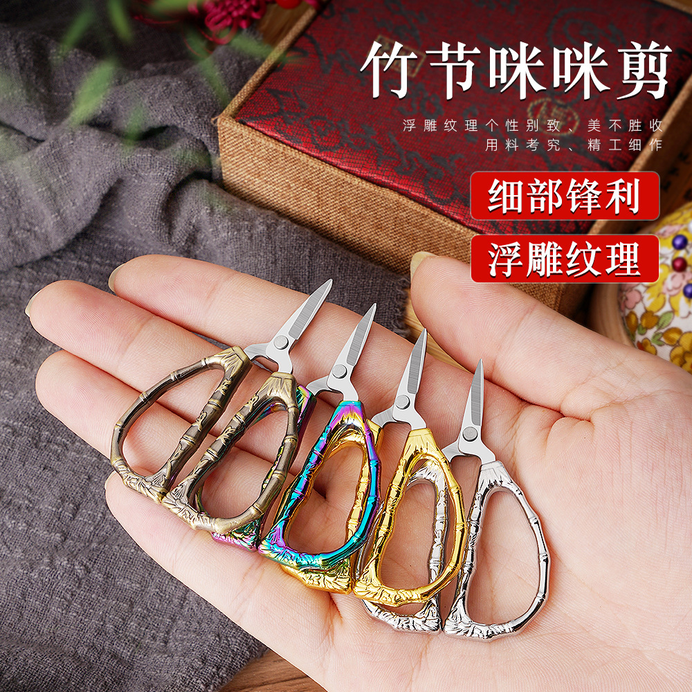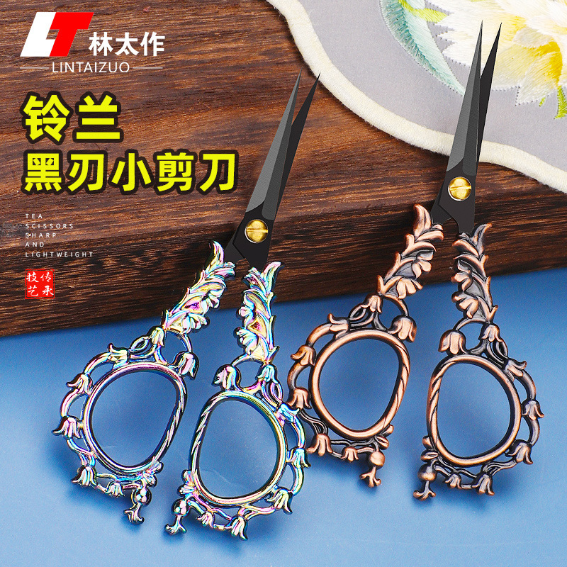 林太作不锈钢绣花手工竹节剪复古合金剪刀家用纸线头尖头剪子