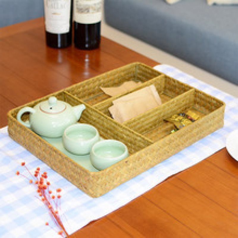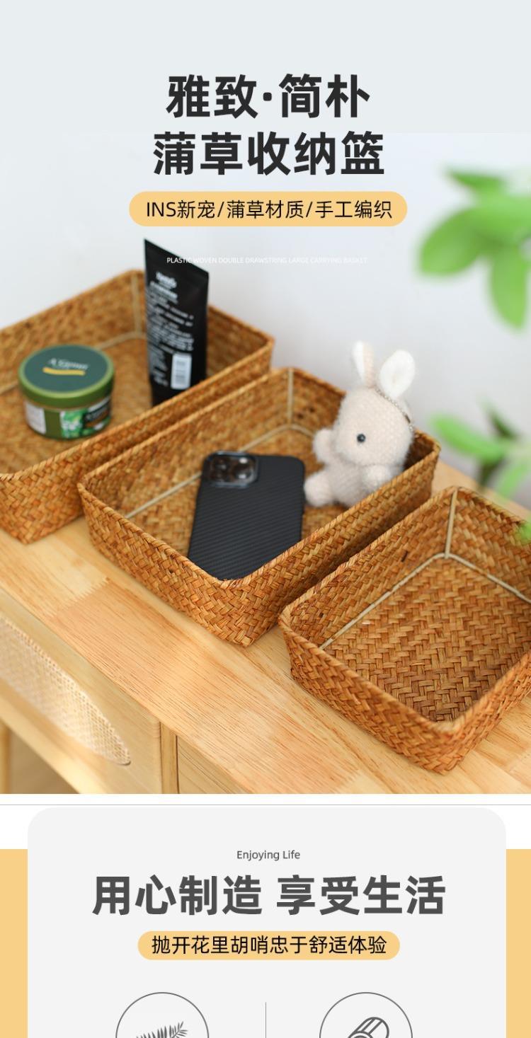 海草編みデスクトップ雑貨箱洗面スキンケア用品整理かご茶何リモコン鍵収納かご
