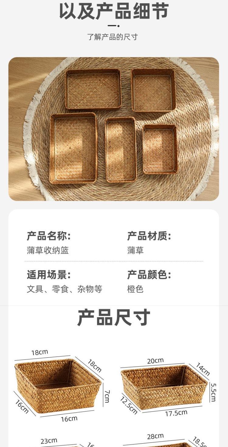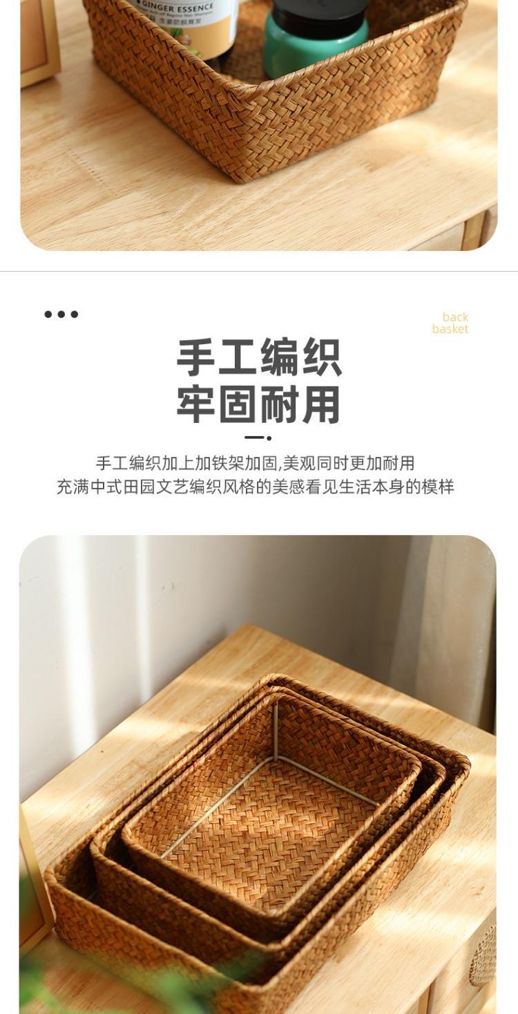 わら収納ボックス衣類収納バスケットギフト家庭用家具スナックおもちゃ収納長方形デスクトップ収納バスケット