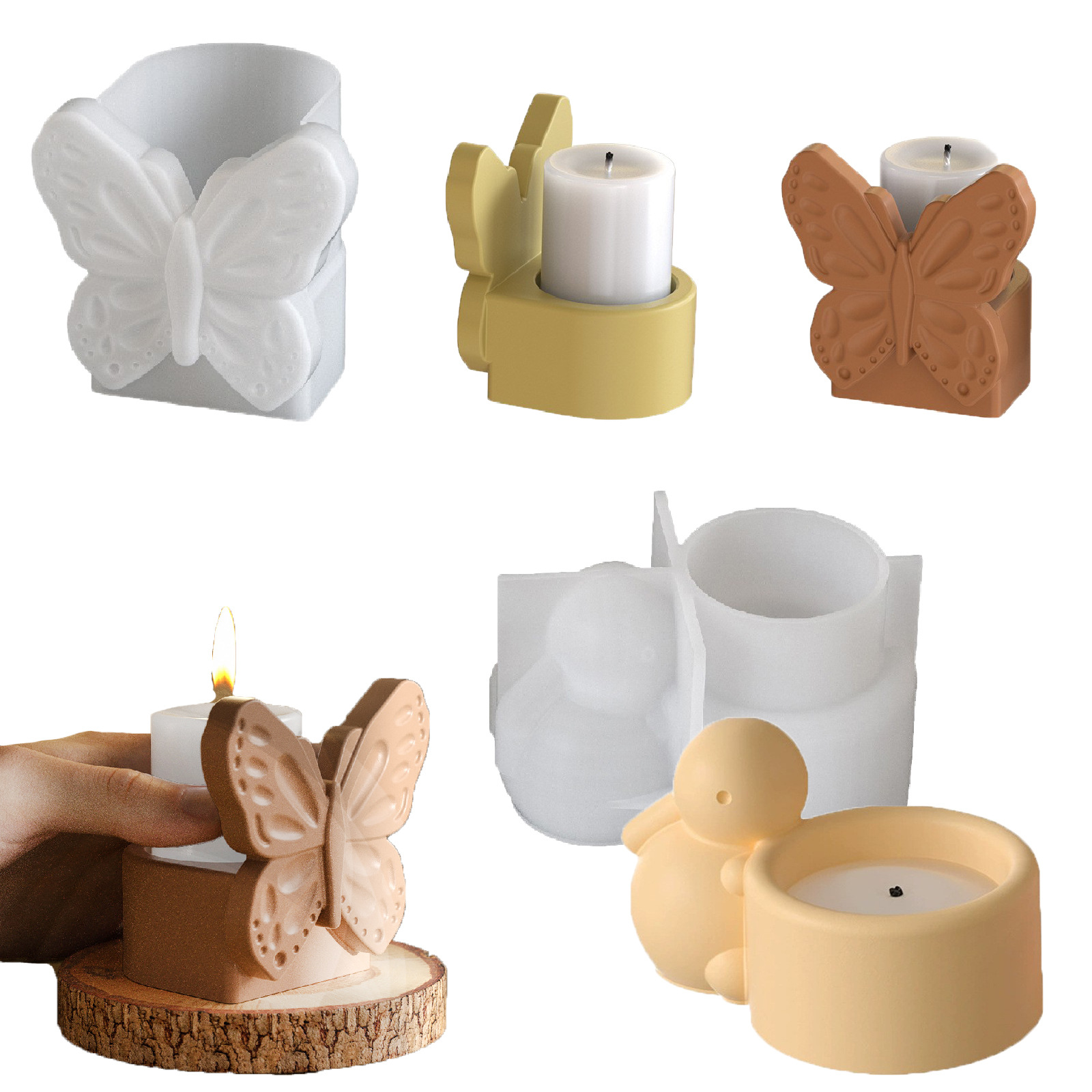 イースターバニーキャンドルカップ樹脂シリコンモールド、DIY蝶石膏セメント植木鉢キャンドルホルダー卸売