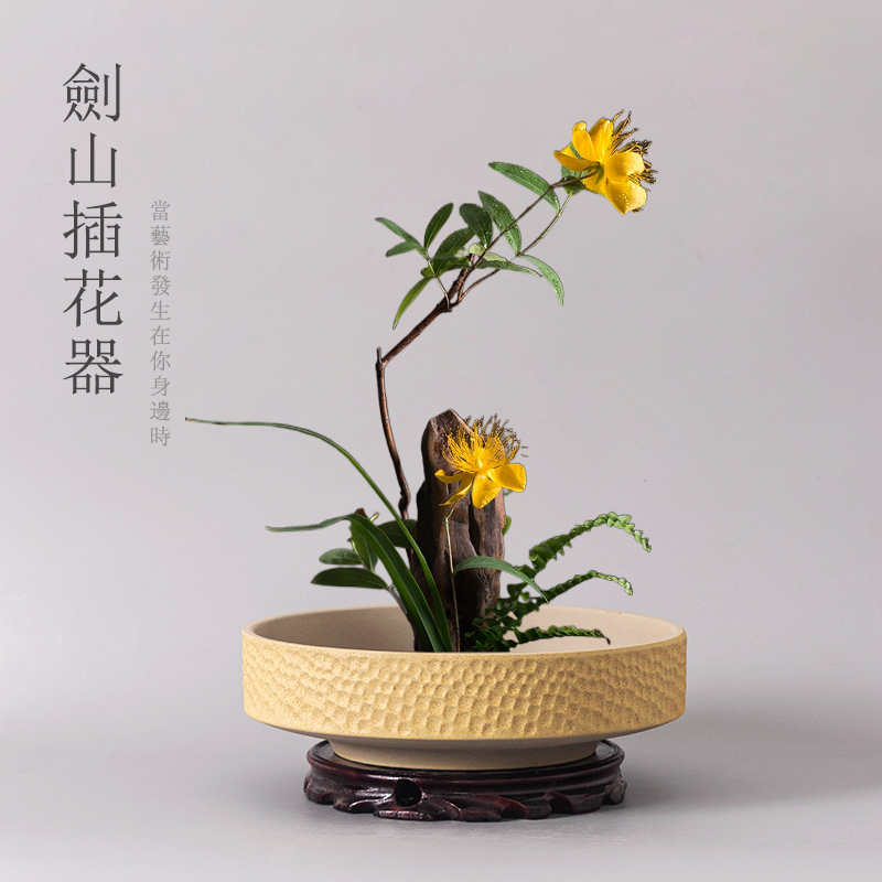 中国式剣山盆陶磁器生け花デスクトップ置物大口径ハンマー円盆水培器家庭装飾植木鉢