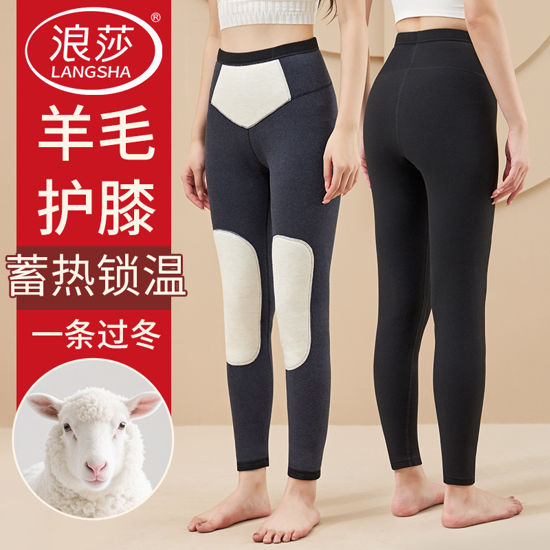 浪莎秋裤女秋冬季加绒加厚保暖裤高腰收腹羊毛贴片修身打底裤线裤
