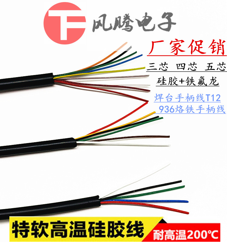 特软铁氟龙多芯硅胶线2 3 4 5 6 8 10芯耐高温镀锡铜焊台线手柄线
