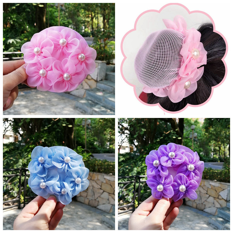 新しい子供のバレエのダンスの団子の髪の毛のネットカバーの女の子の洋風の雪の糸のレースのネットの兜の花は縄を引きます。