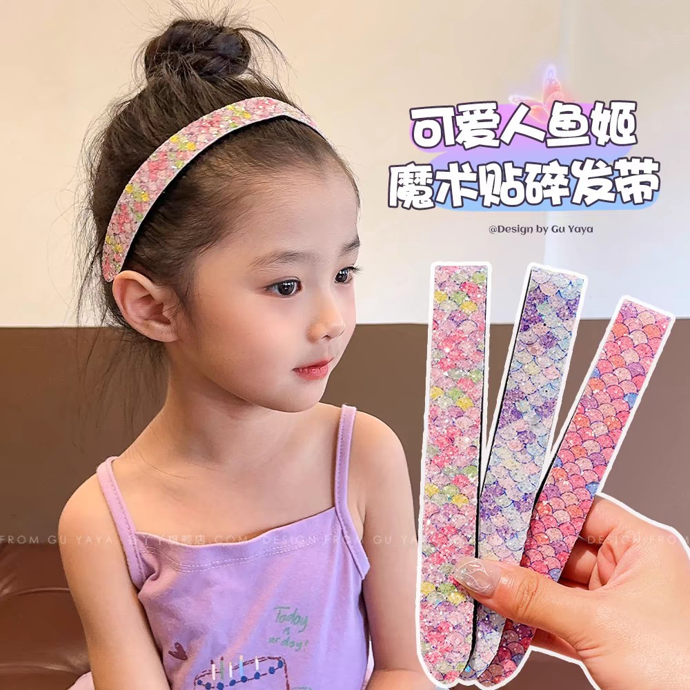 子供のマーメイドの王女のマジックテープのカチューシャの女の子は団子の頭を刺して赤ちゃんの額の髪を飾ります。