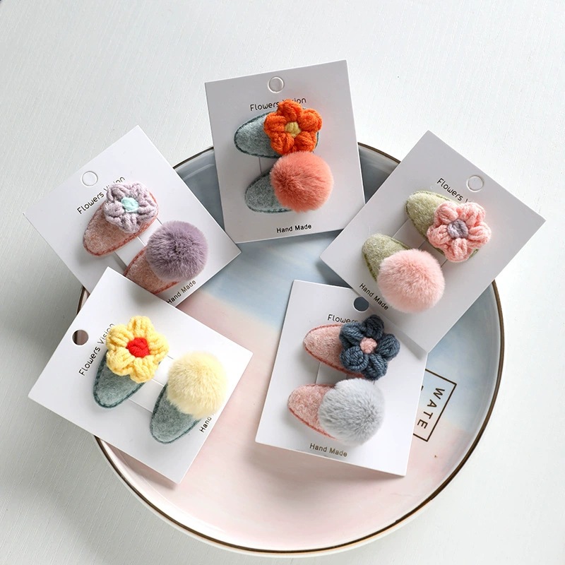 韩版儿童发饰毛球球发夹宝宝BB夹刘海夹毛呢跳板夹糖果色花朵BB夹