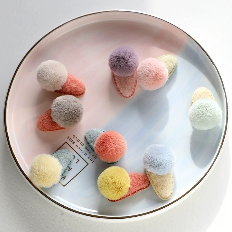 韩版儿童发饰秋冬水貂毛球BB夹毛呢跳板夹糖果色球边夹婴童刘海夹