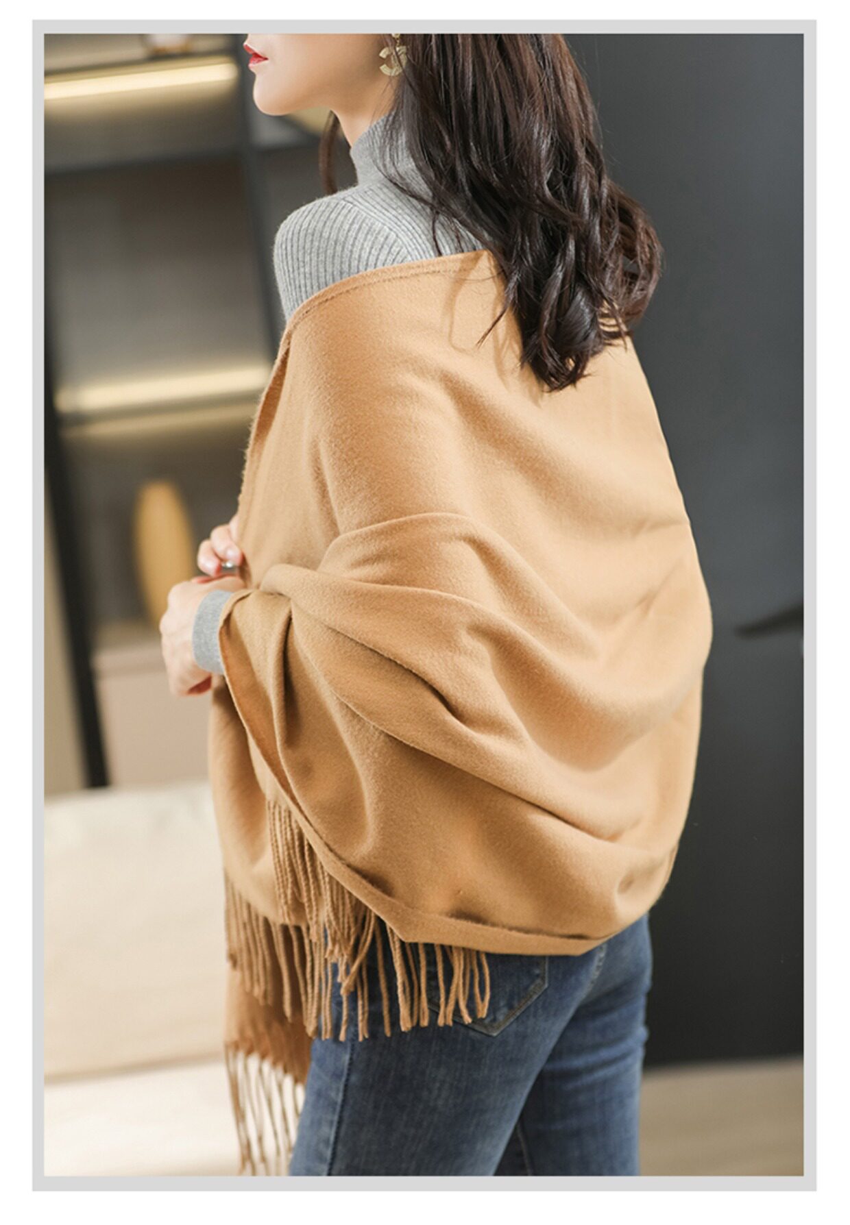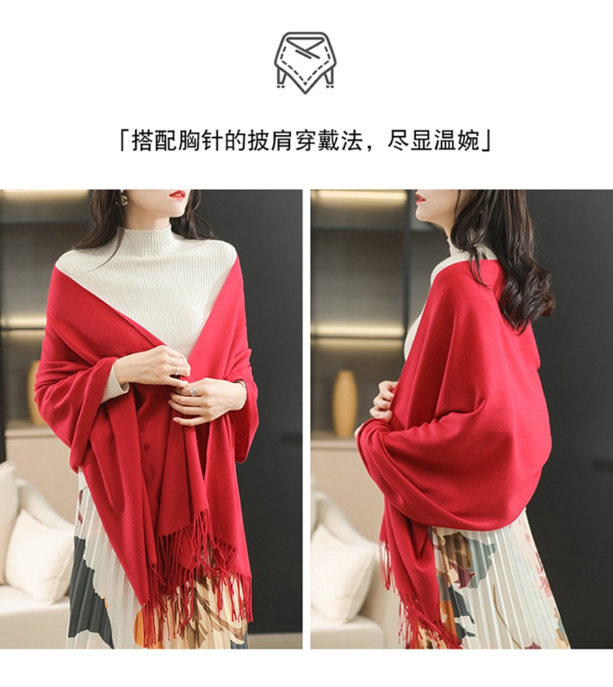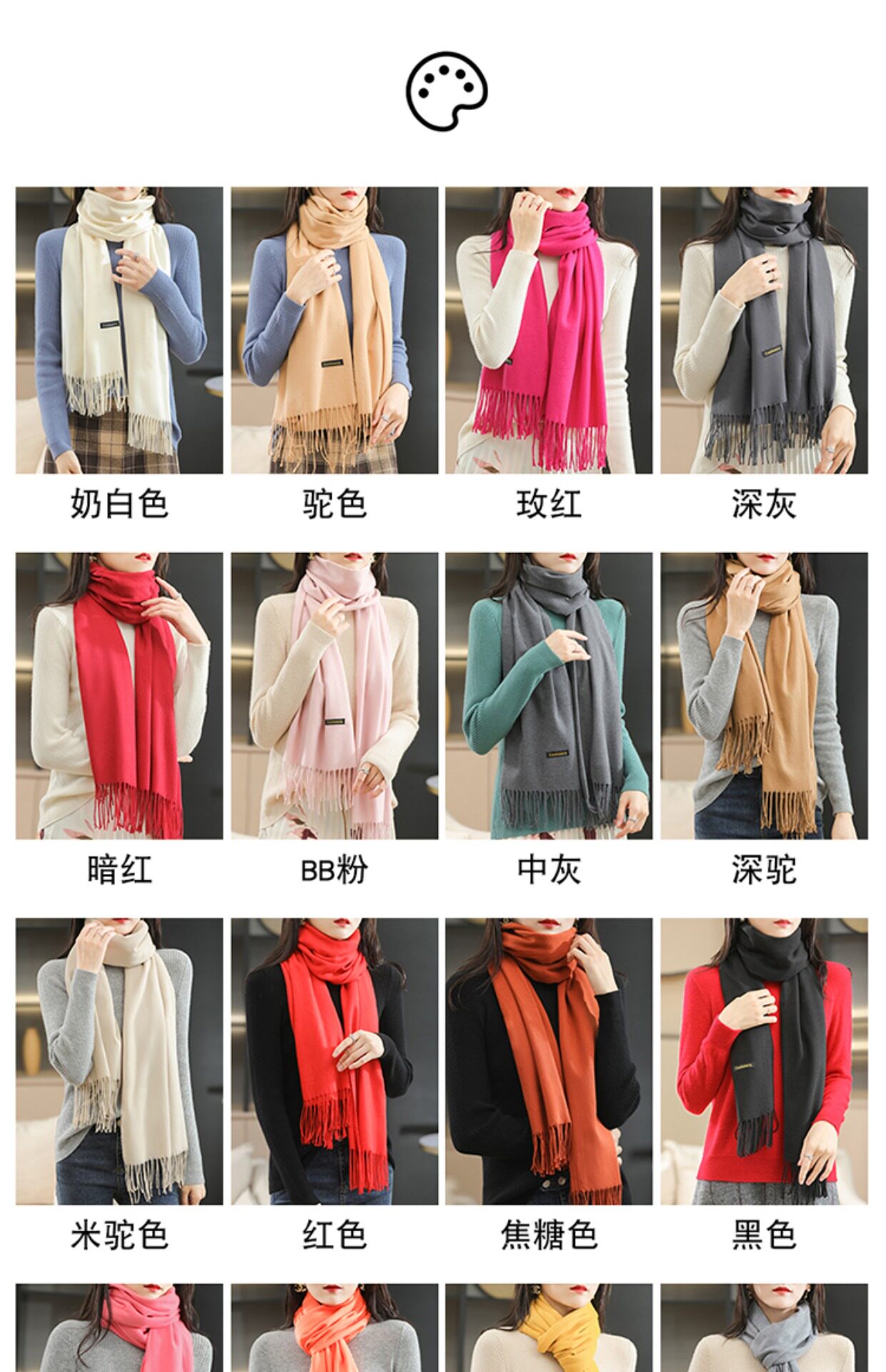 【ブランド在庫一掃】ウールのマフラーを厚くして保温した大ストールの外に秋冬の女性用カシミヤの純色を合わせます。