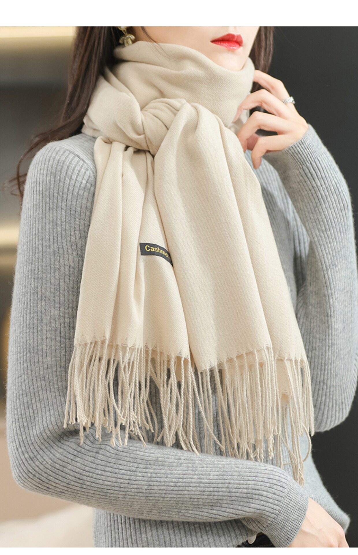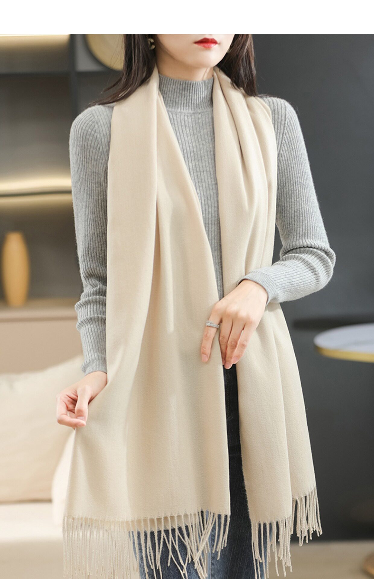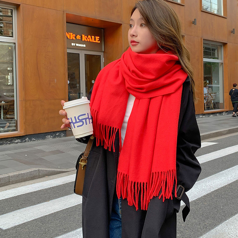 【ブランド在庫一掃】ウールのマフラーを厚くして保温した大ストールの外に秋冬の女性用カシミヤの純色を合わせます。