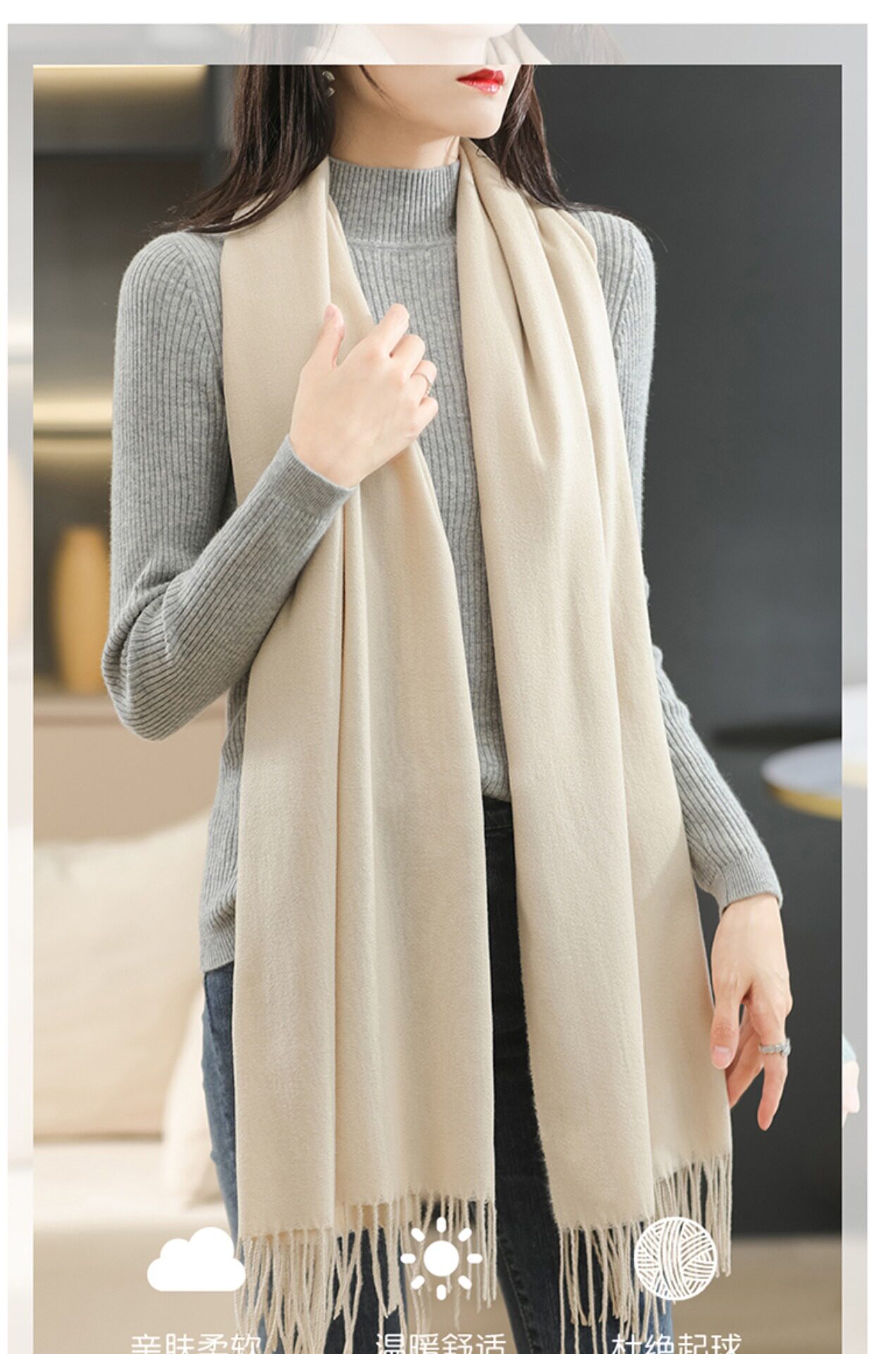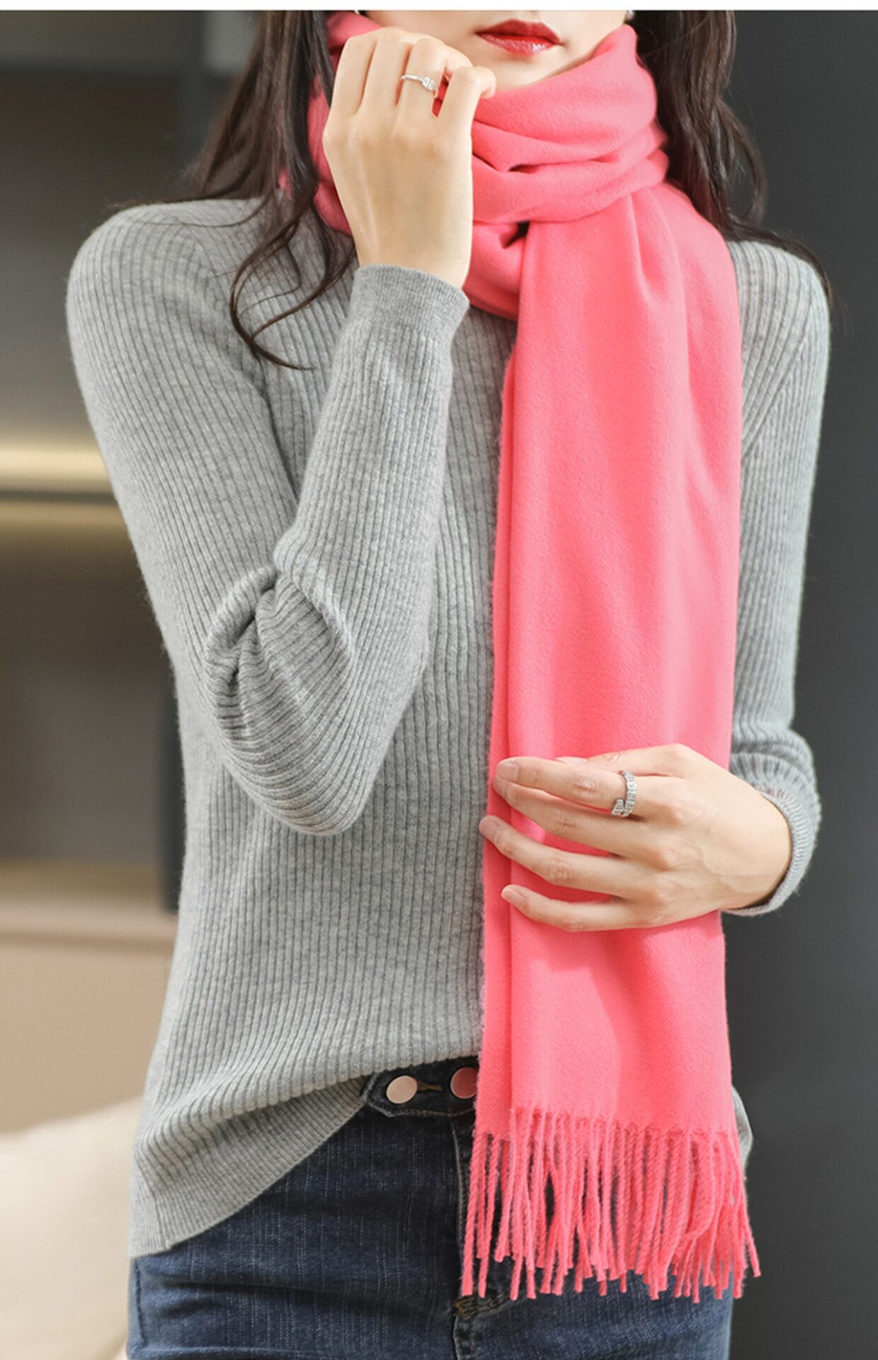 秋冬新作 純毛スカーフ オーストラリア産100%カシミヤ 無地 多用途 カップル向け 冬用保温ニットネックウォーマー 女性用