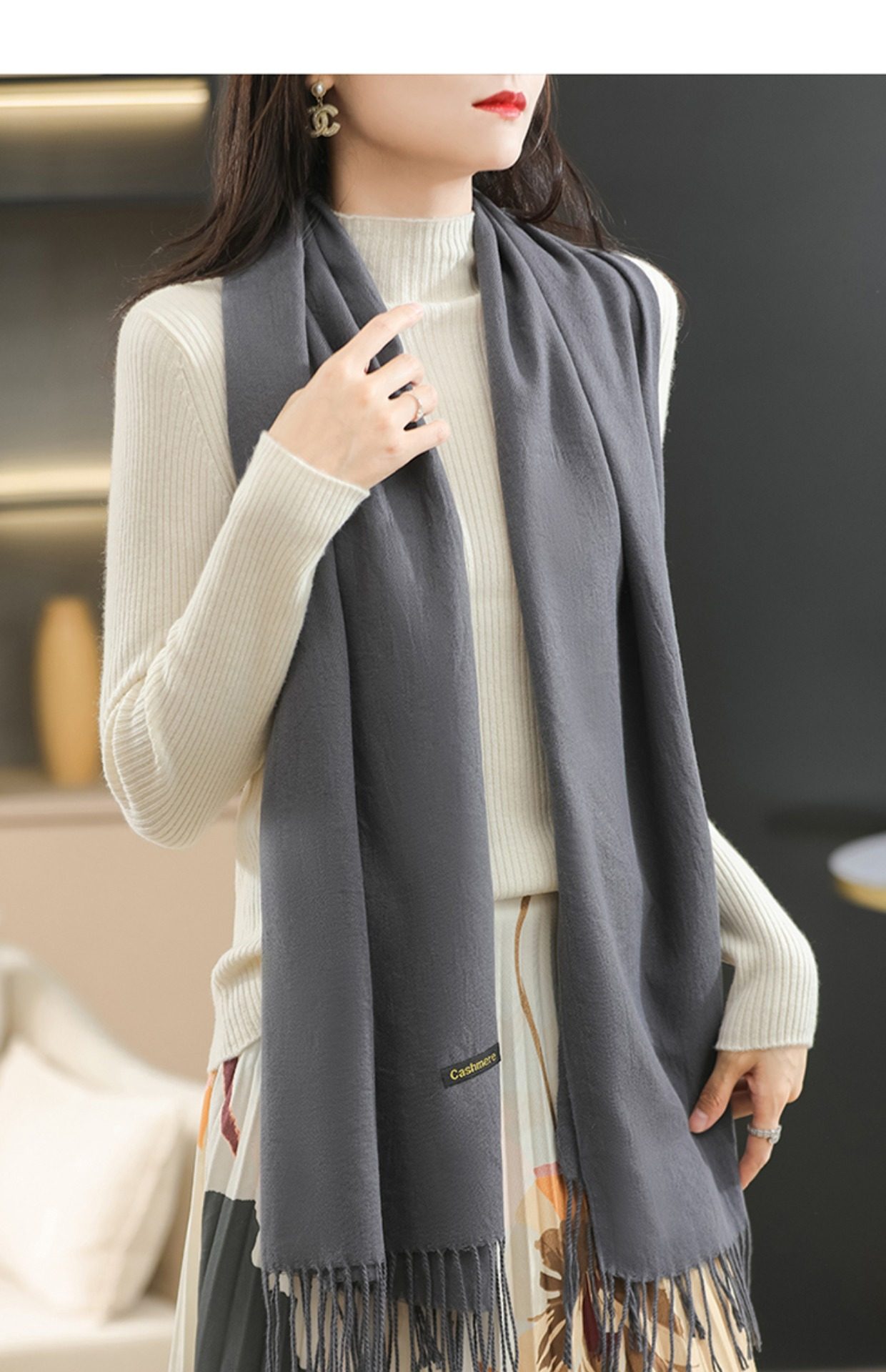 高級グレー無地カシミヤスカーフ、ユニセックス、多用途、秋冬新作、イミテーションウールスカーフ、マザーズショール