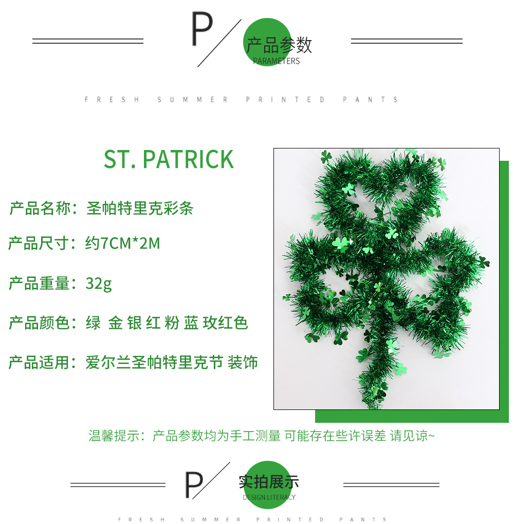 跨境爱尔兰节装饰彩条2M三叶草彩条毛条圣帕特里克节装饰拉花彩带