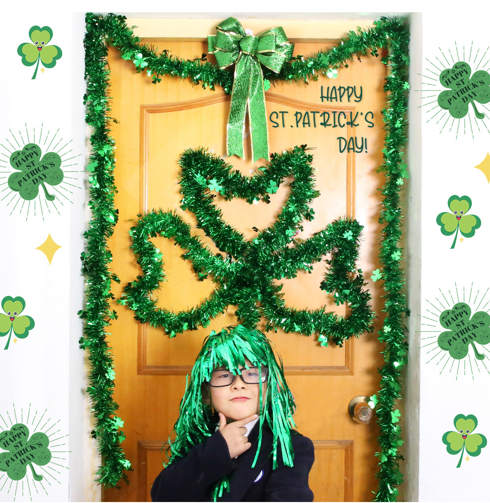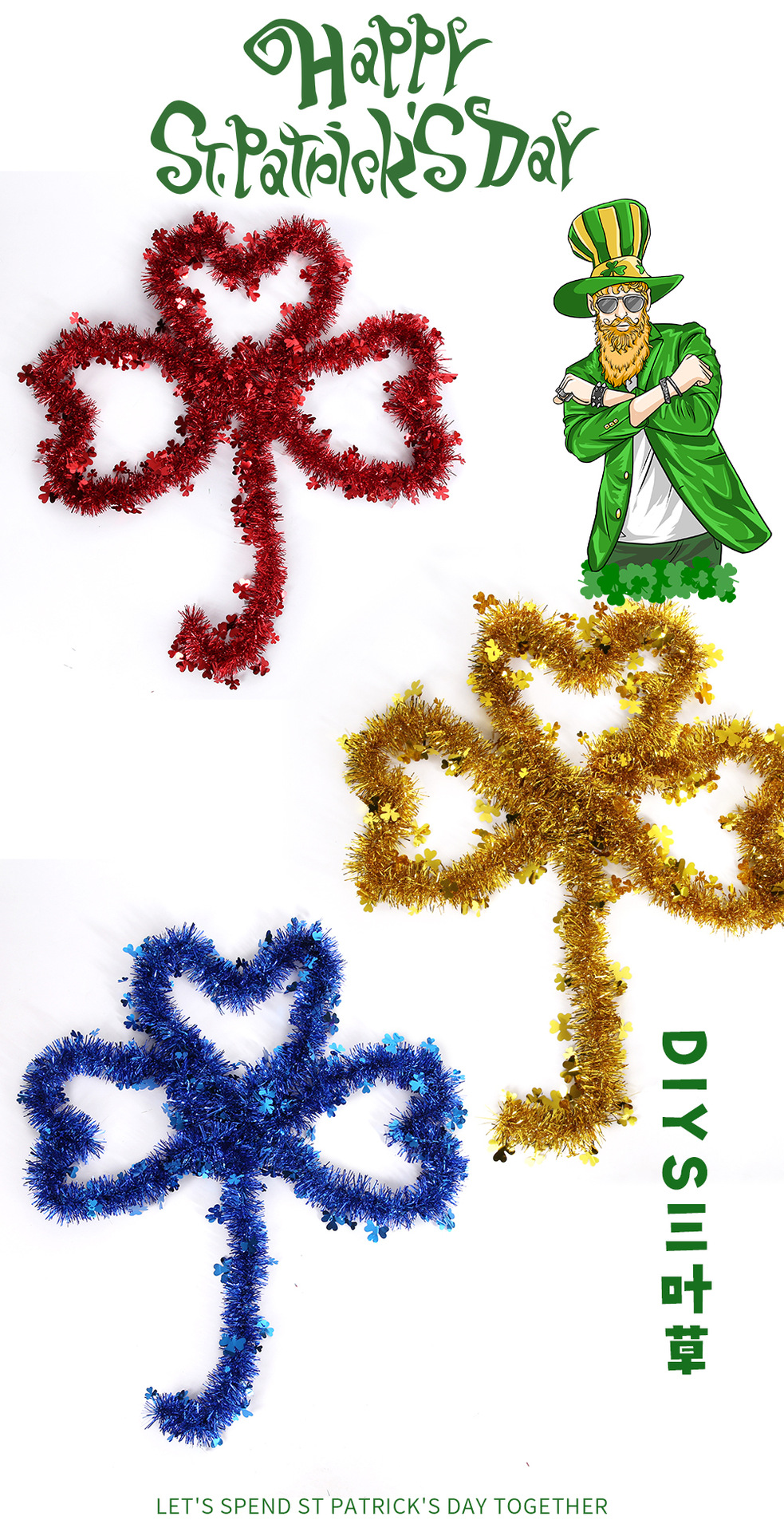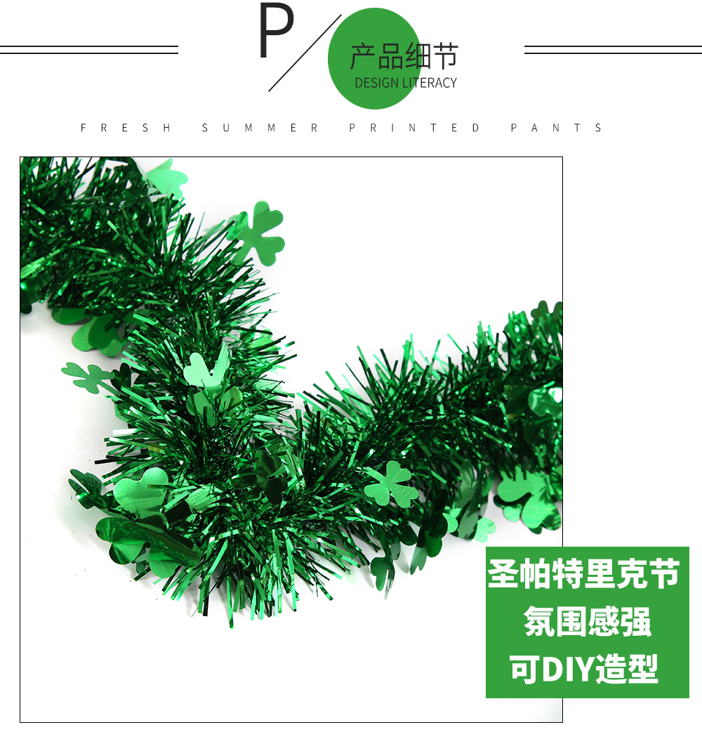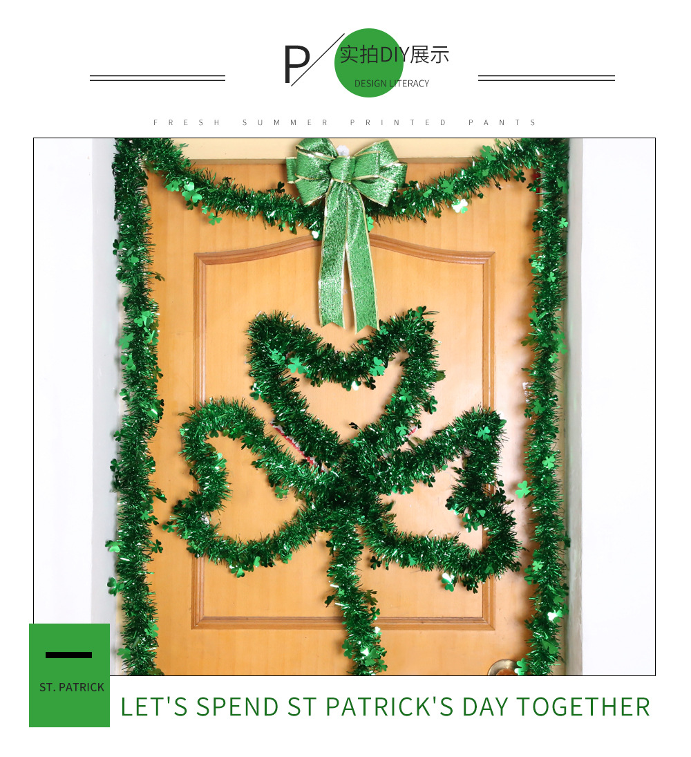 クロスボーダー新品2mクローバーカラーストリップセントパトリック装飾品パーティーアレンジアイルランド祭り装飾モヘアストリップ