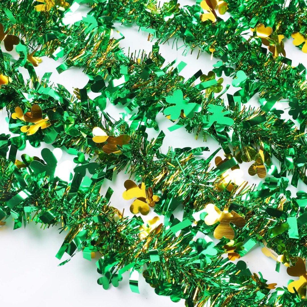 アマゾン聖パトリックの日の三つ葉の雨の糸のカーテンの背景のアイルランドのカーニバルの装飾用品の道具