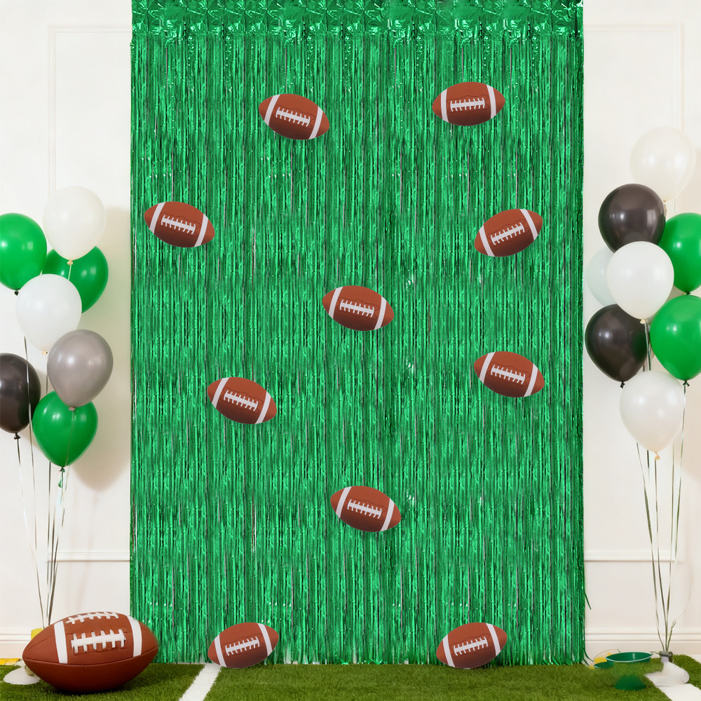 新款橄榄球雨丝帘DIY贴纸背景帘超级碗美式足球派对装饰雨丝门帘