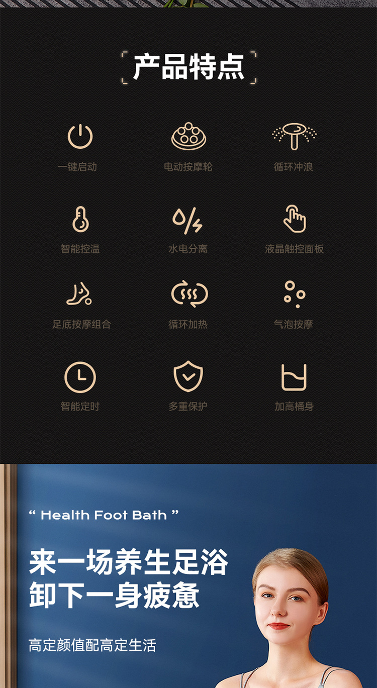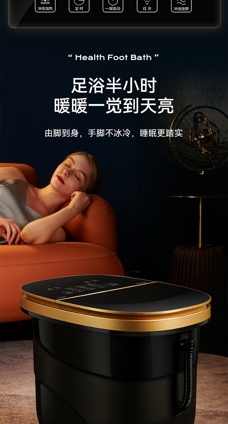 志高泡足桶夏電動マッサージ加熱恒温過下腿殺菌足浴槽家庭用自動洗面器