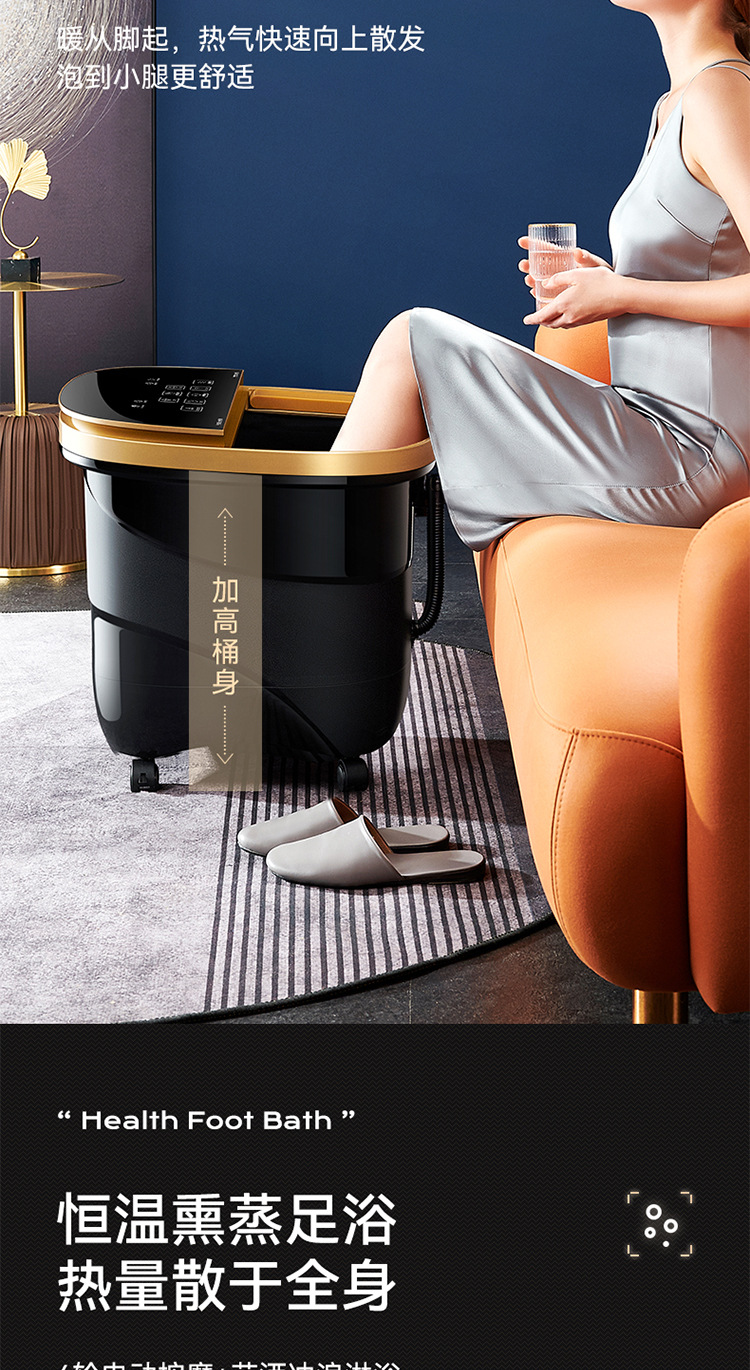 熏蒸足浴盆全自动电动加热恒温家用气泡洗脚盆足疗按摩器泡脚桶深