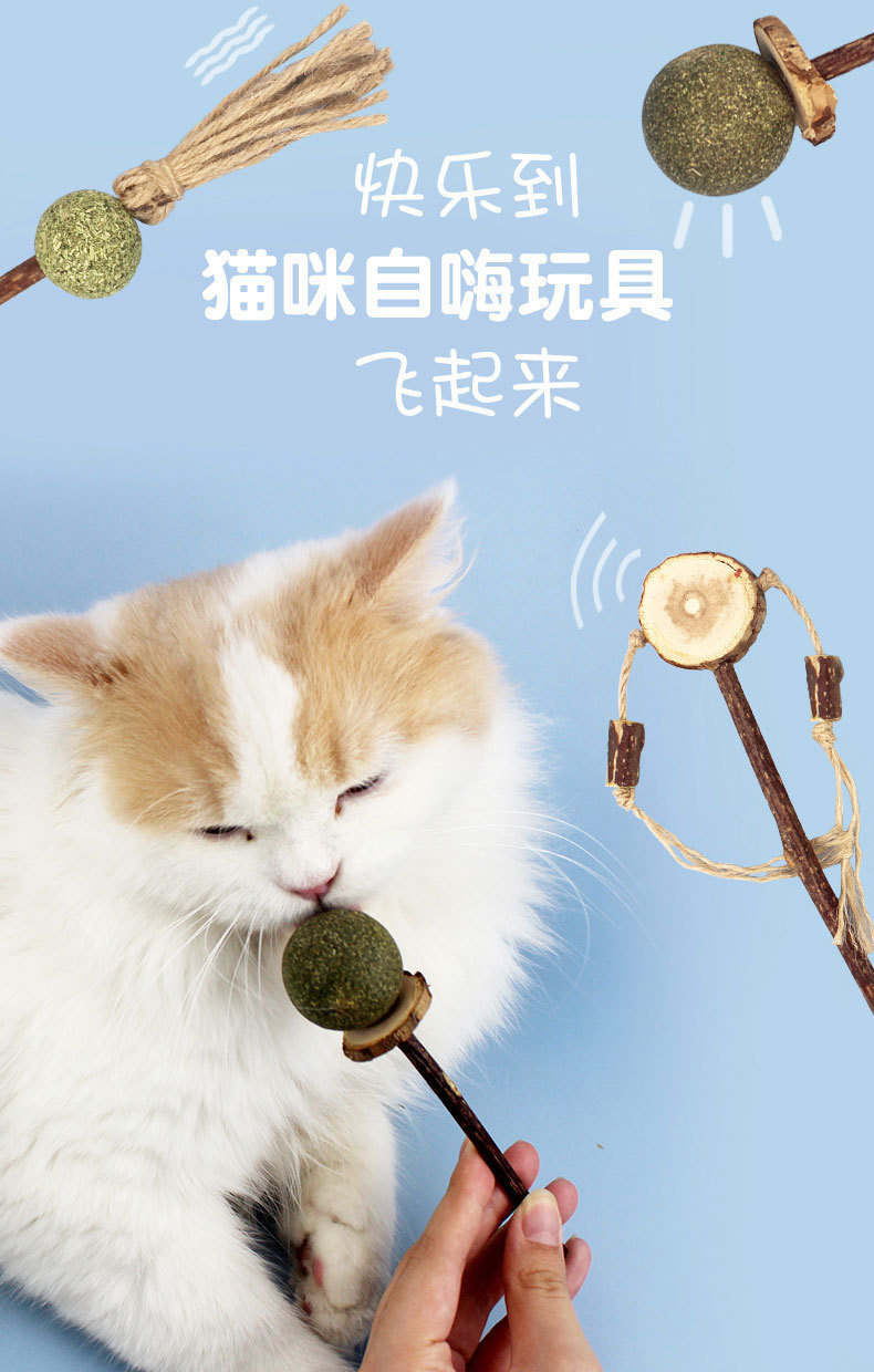 現品の卸売りの趣味の猫のミントのボールのマイクは猫の棒の木の天のタデの棒の棒のアメの清潔な歯の歯磨きの棒の6