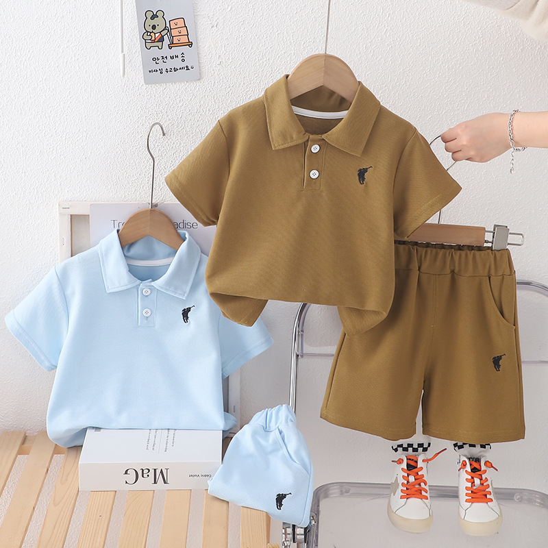 男の子の夏服セットの新型子供の夏の服男の子の夏のアルファベットの襟の半袖の2つのセットの卸売り