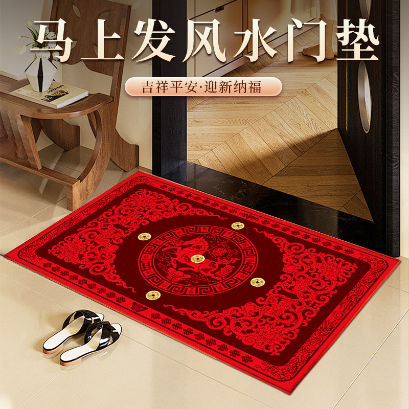 批发新品2026丙午马年新款 马上发财风水门垫 贴真铜钱