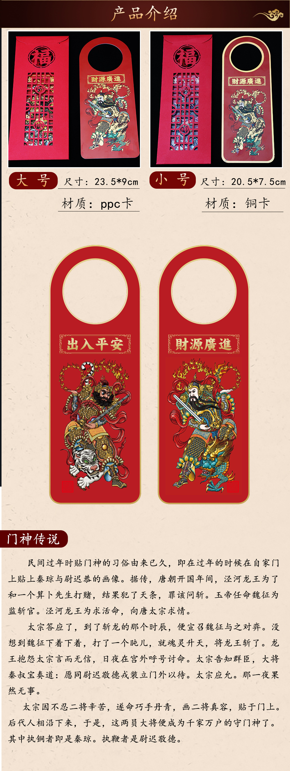 2025年巳年(蛇年)尉迟恭秦瓊門神、新居の玄関錠の取っ手飾り、引っ越し祝いの赤い吊り下げ飾り