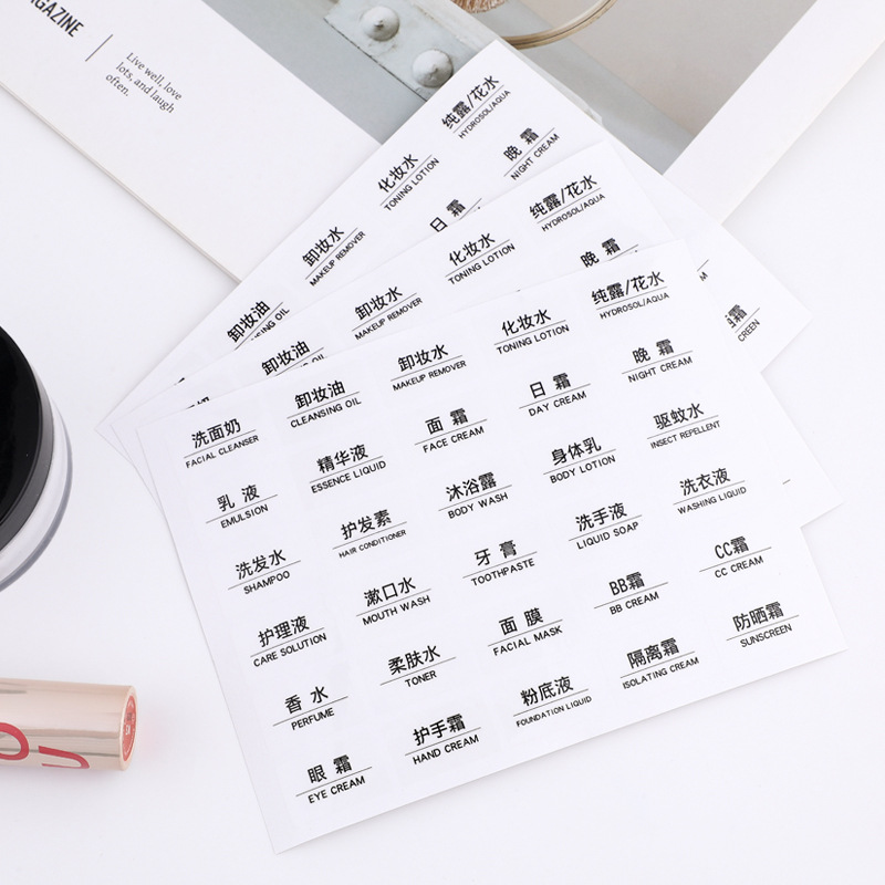 中国語と英語の分離ボトル用透明ラベル、旅行用化粧品分類ステッカー、スプレーボトルラベル識別用粘着ラベル