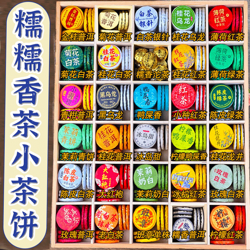 小茶饼糯糯香茶摆摊厂家批发云南普洱熟茶30种茶生茶红茶绿茶白茶