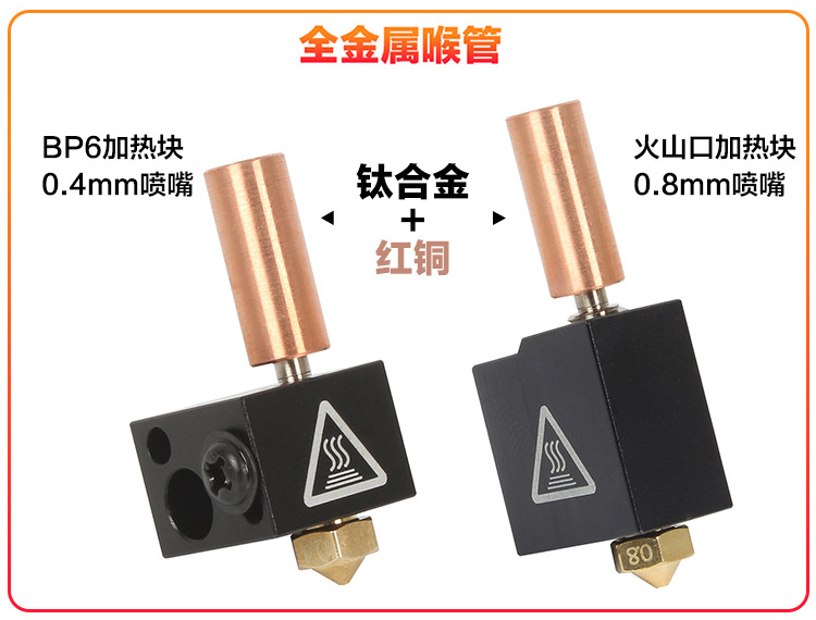 3dプリンタ付属品e3 dv6全金属シングルヘッドモジュール喉頭管加熱ブロックノズルセット0.4/1.75