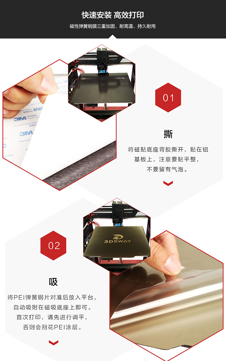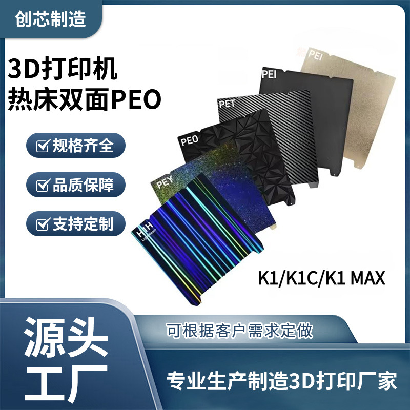 3D打印机热床平台双面喷涂PEI弹簧钢板PEYPEO贴膜软磁贴磁吸