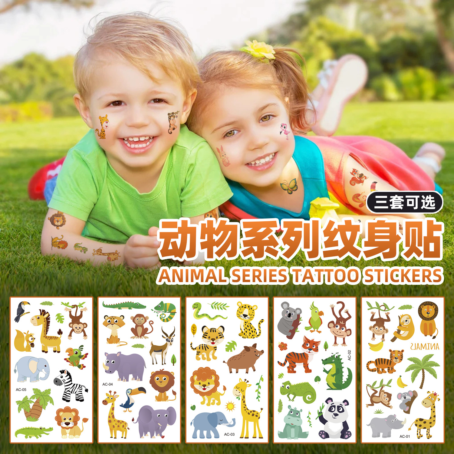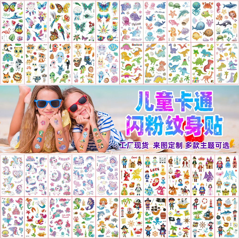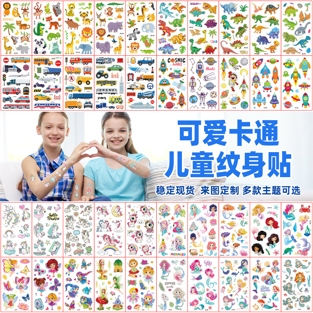 国境を越えた新しい子供アニメのタトゥーは防水かわいいユニコーン恐竜動物玩具プレゼントの臨時シールを貼っている