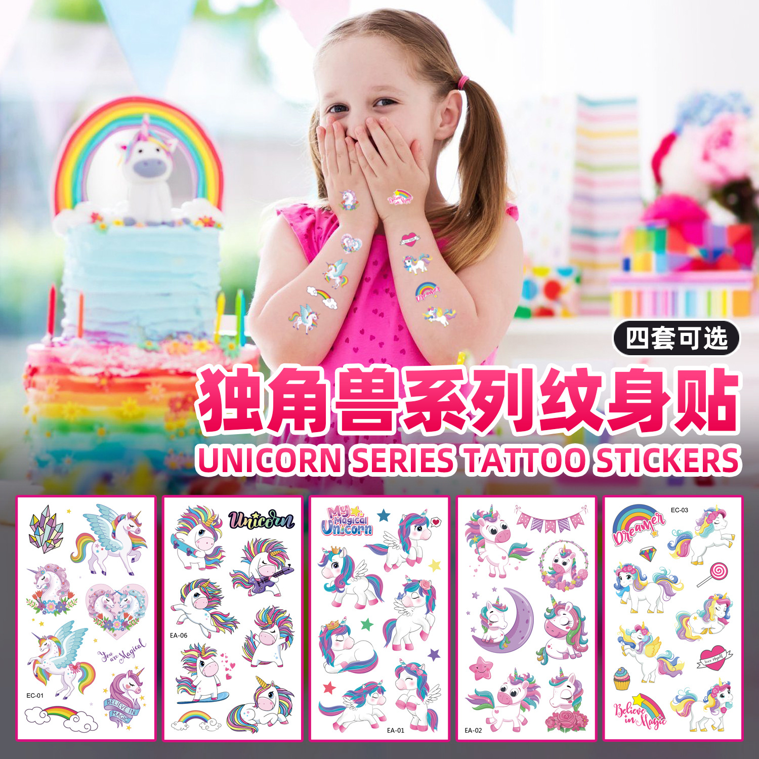 国境を越えた新しいユニコーンのタトゥーは子供のアニメ防水かわいい趣味パーティーのプレゼント玩具の臨時シールを貼っている