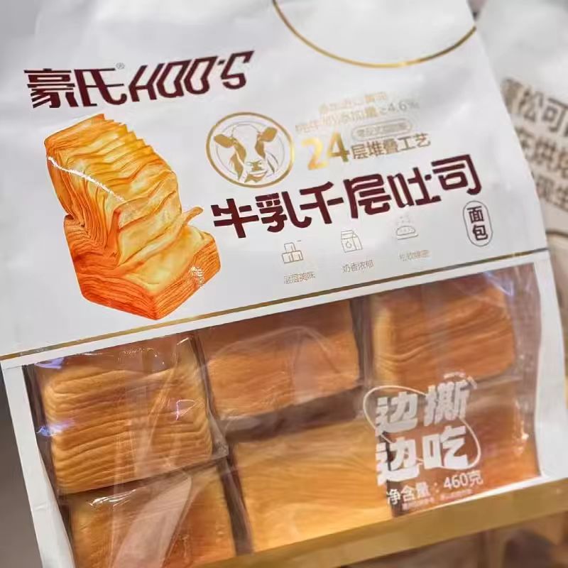 豪氏の牛乳の千層のトーストのパンの460gの袋は引き裂いてネットの赤いレジャーの午後のお茶のお菓子の朝食を食べます。