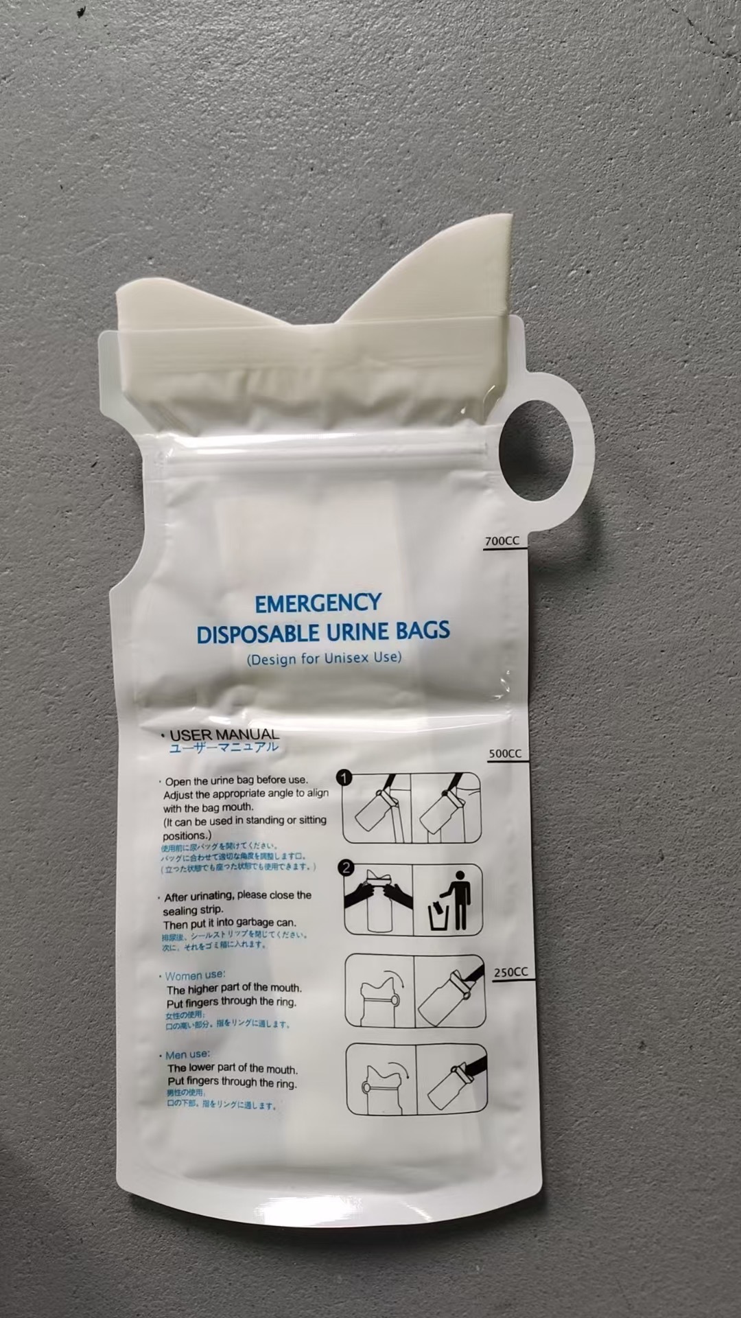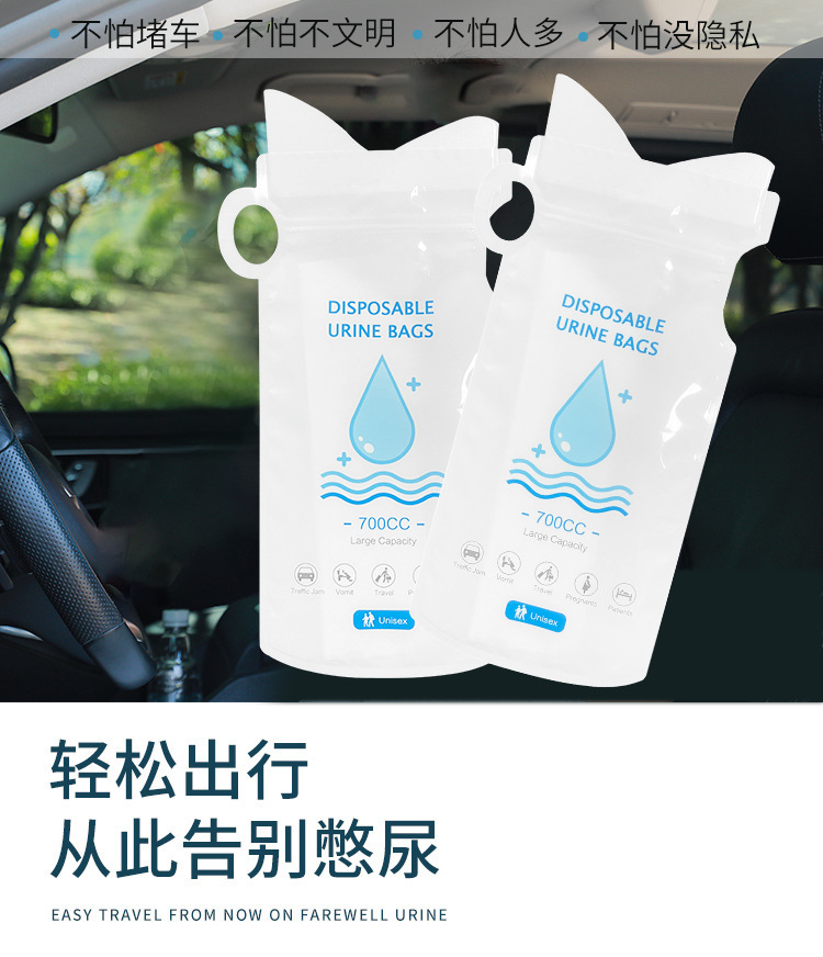 車の緊急尿袋が渋滞しています。使い捨ての小便袋は男女通用します。長距離旅行の嘔吐袋はトイレを移動します。