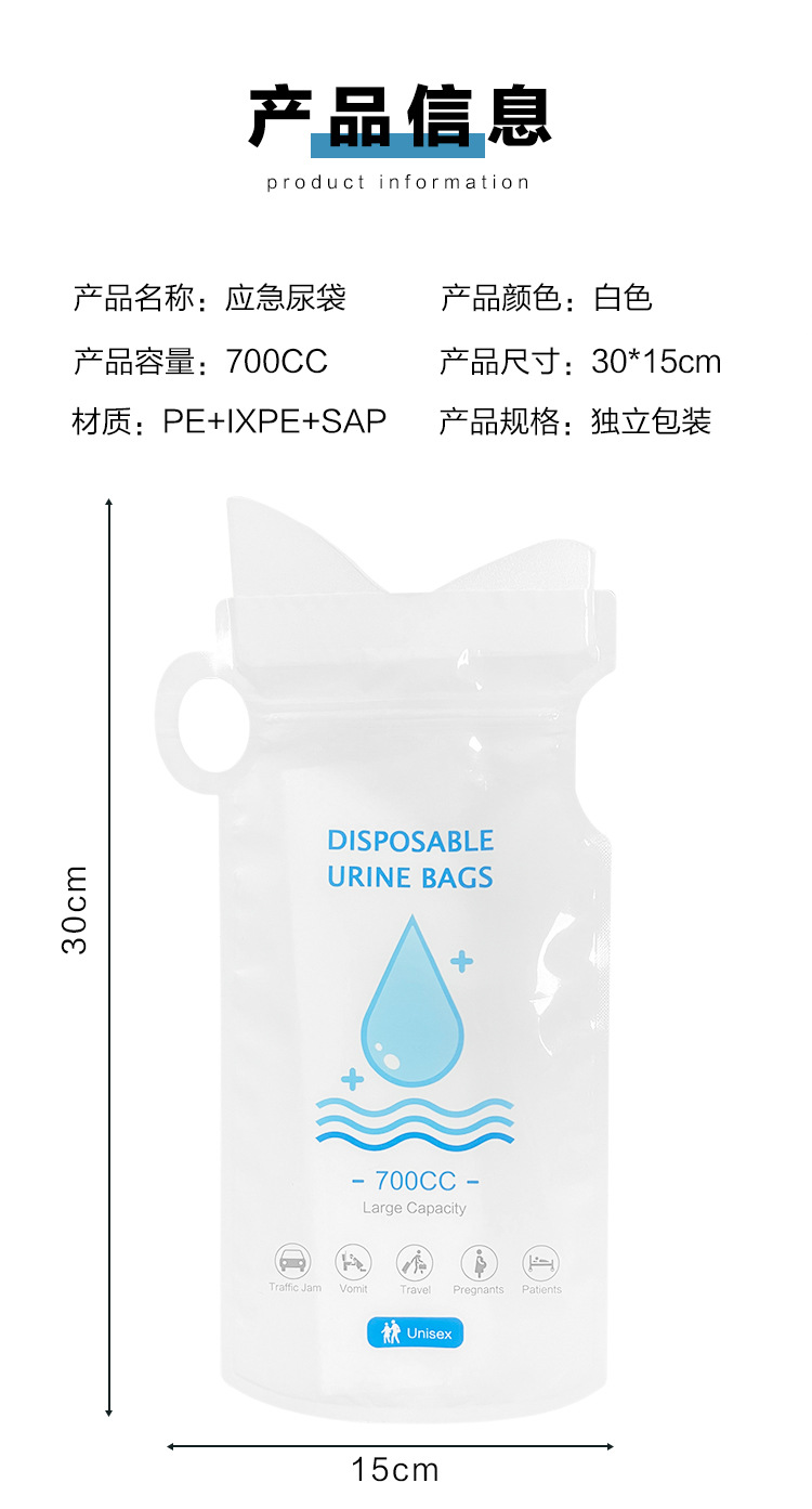 跨境车载应急尿袋一次性小便袋堵车男女通用便携马桶车载应急尿包