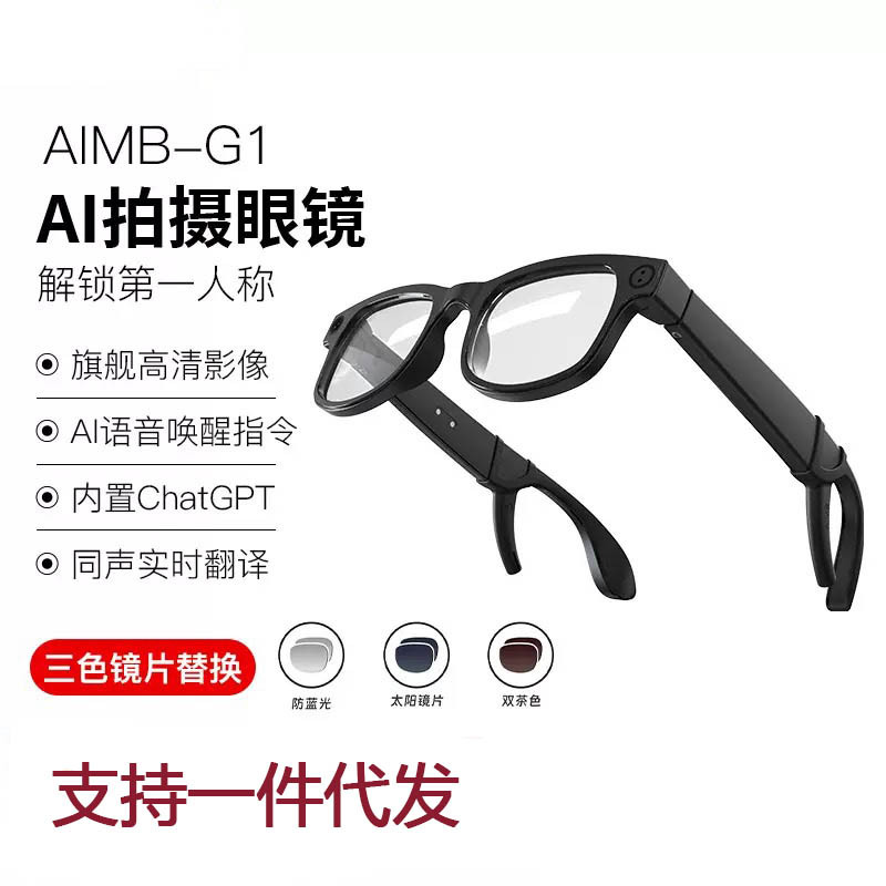2025跨境爆款AI智能眼镜G1G2长续航实时翻译蓝牙通话识物听音乐