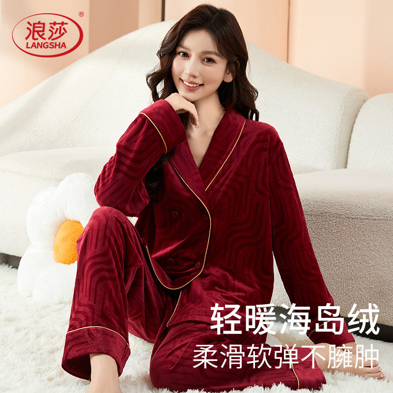 朝興パジャマさん秋冬に保温長袖海島パイルファッションの大きいサイズを厚くして、スーツの家の服を着ることができます