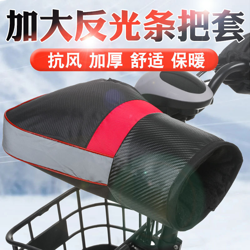 摩托车把套冬季保暖电瓶车挡风手套加绒加厚防泼水反光条护把批发