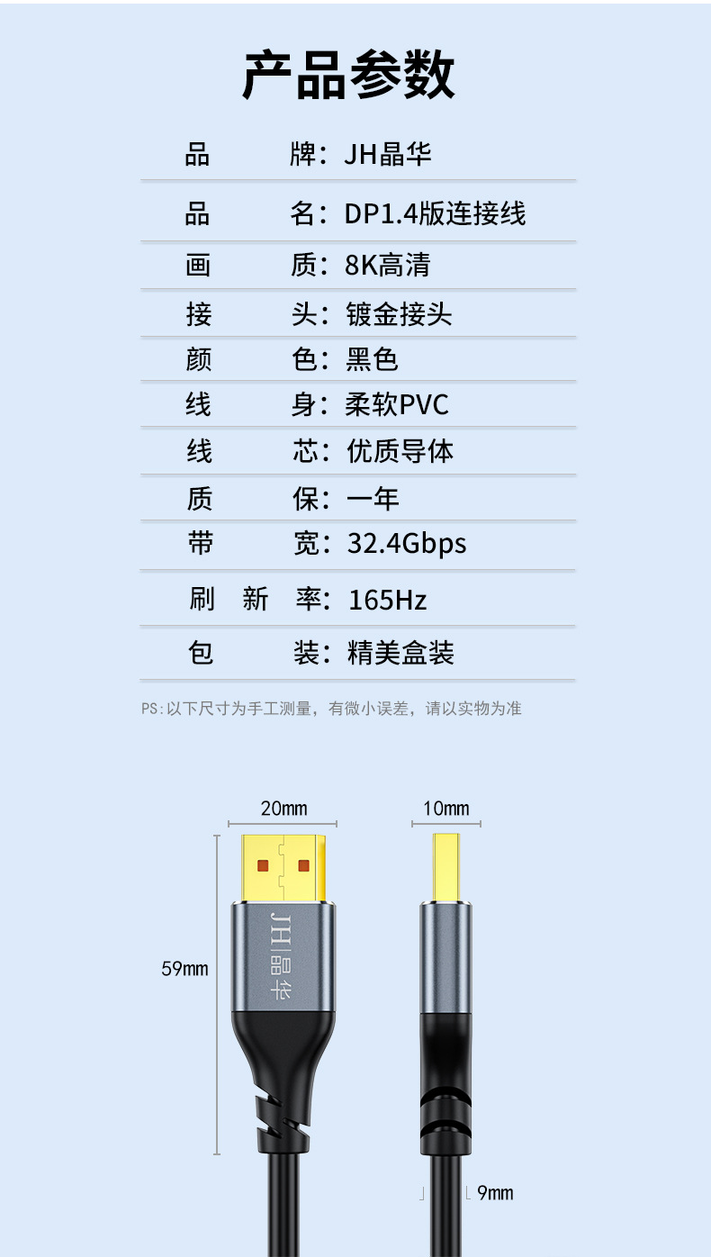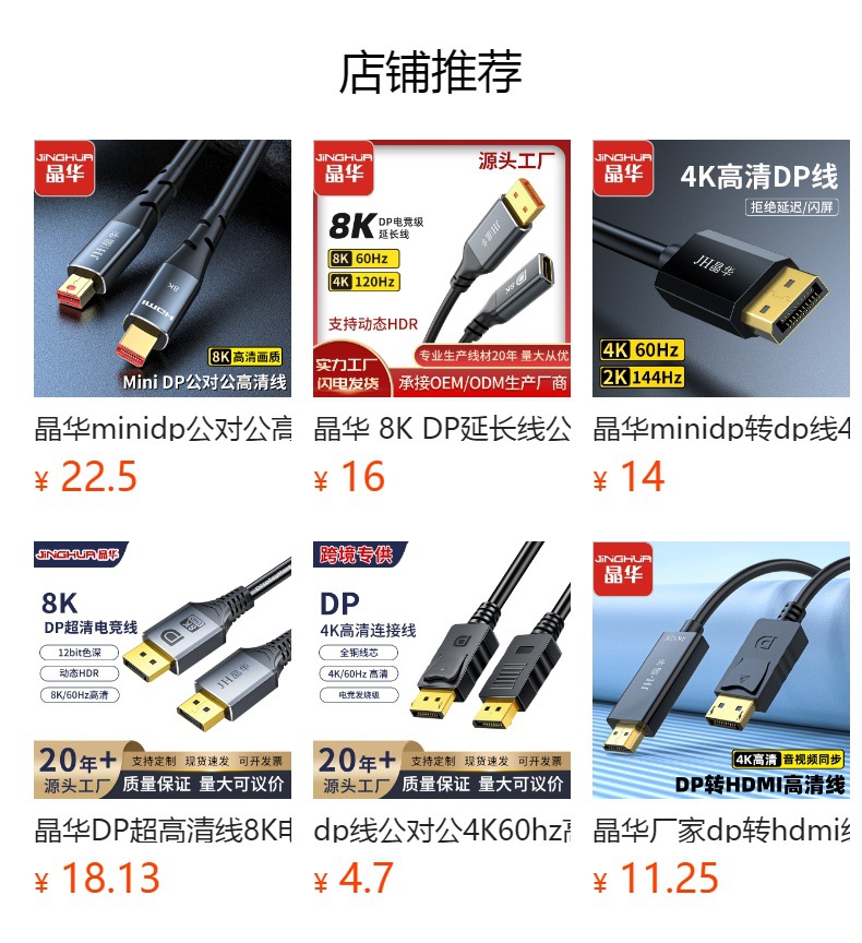 晶華dp 1.4公対公dp変換dp線8kコンピュータ本体ディスプレイ接続線dp線1.4版dp