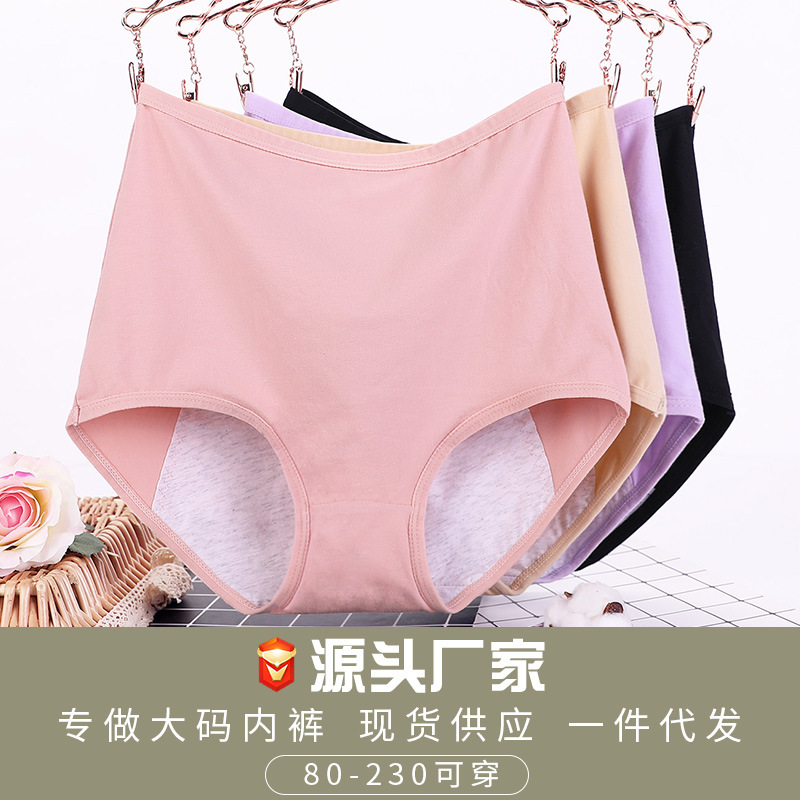大きいサイズの生理の下着の女性の太っているmmの純綿の高腰の月経期の防漏の大きいサイズの200斤のおばさんの衛生の下着の頭